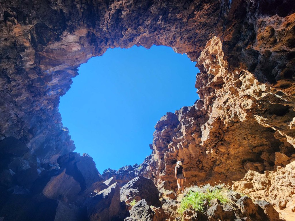 Po 10 minutach wpatrywania się w zielone nieboraki schodzimy ze wzniesienia do doliny i wędrujemy znowu po piaszczystej nawierzchni w kierunku tuneli lawowych (lava tubes).