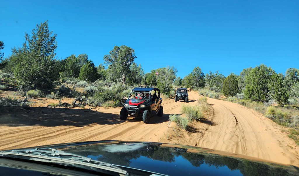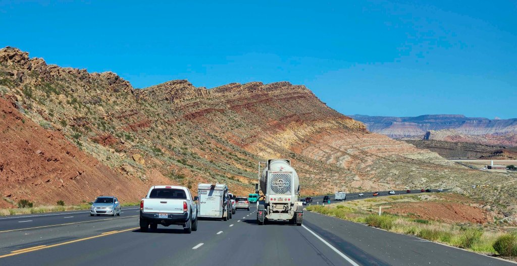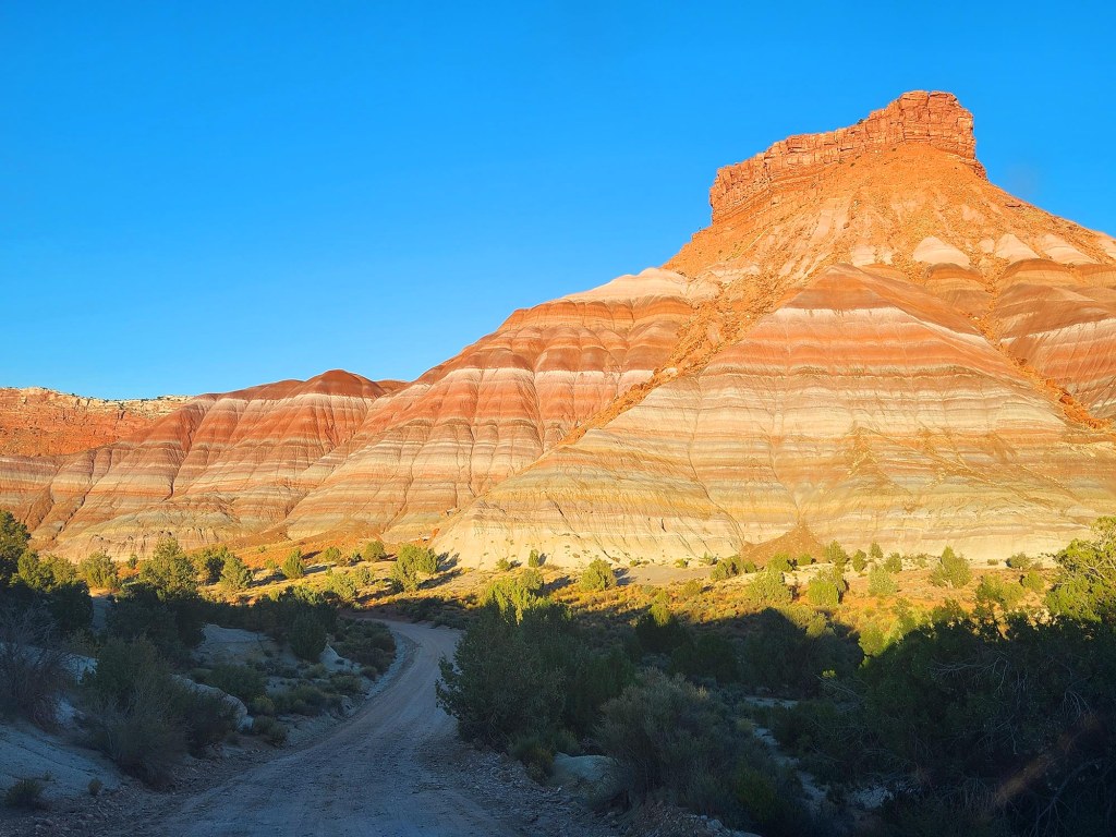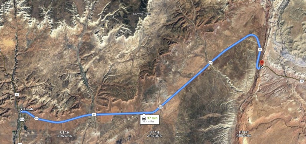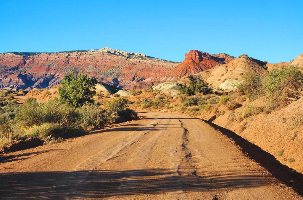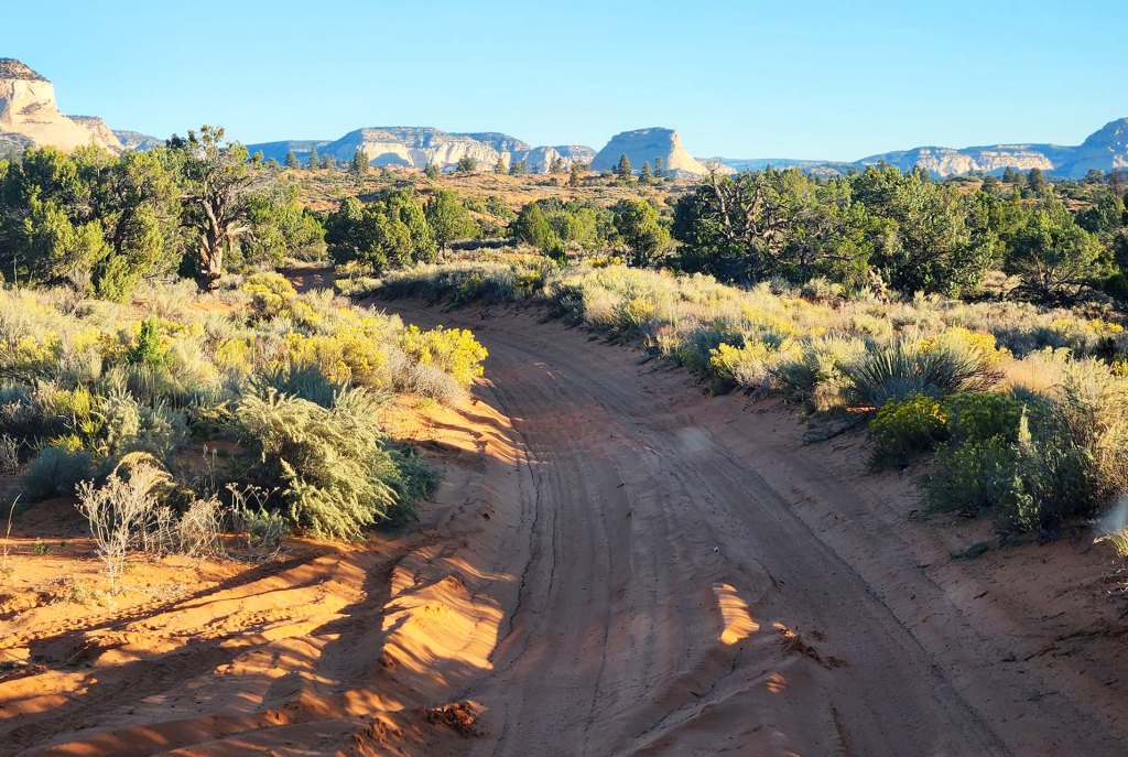 Przejeżdżamy następnie przez nasze docelowe miasteczko Kanab i korzystając z ostatnich chwil światła słonecznego jedziemy dalej na wschód w kierunku miasteczka Page by odwiedzić jedną z najbardziej widowiskowych szutrowych dróg w stanie Utah – Paria Road (#585).