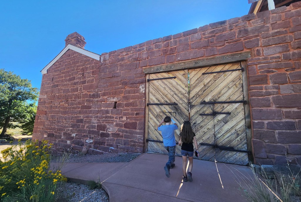 Rozgrzani do czerwoności palącym wczesnopopułudniowym słońcem opuszczamy park i jedziemy w kierunku Arizony do Pipe Spring National Monument ($7/osoba lub N.P Pass, czynne 8.30am-4.30pm w sezonie zimowym). Począwszy od około 12,000 lat temu przez obszar ten przechodziły ludy koczownicze, zajmujące się łowiectwem i zbieractwem, następnie zasiedlali je Indianie Pueblo, a po nich pokrewne plemiona Południowego Paiute, które żyją tu nadal. Od XVIII wieku przybyli z Hiszpani misjonarze, odkrywcy i handlarze odwiedzali ten obszar, korzystając z dobrodziejstw tych źródeł. W połowie XIX wieku na stałe osiedlili się tu Mormoni (czyli wyznawcy Kościoła Jezusa Chrystusa Świętych w Dniach Ostatnich), których głównym zajęciem była produkcja sera i mleka i sprzedaż tych produktów mieszkańcom pobliskiego miasteczka Saint George.