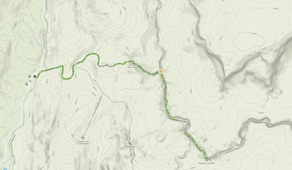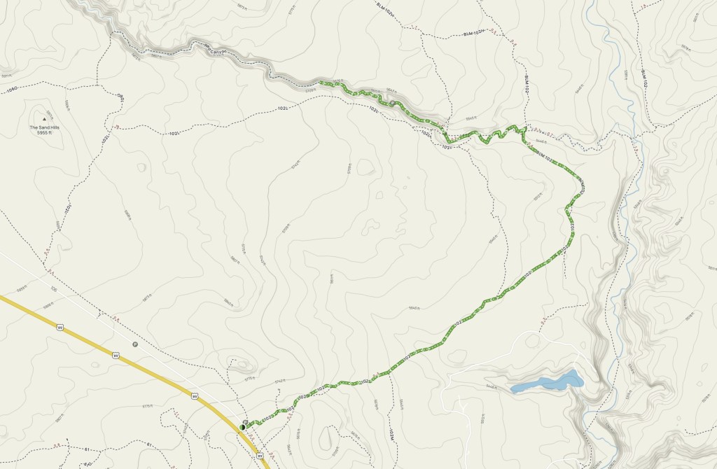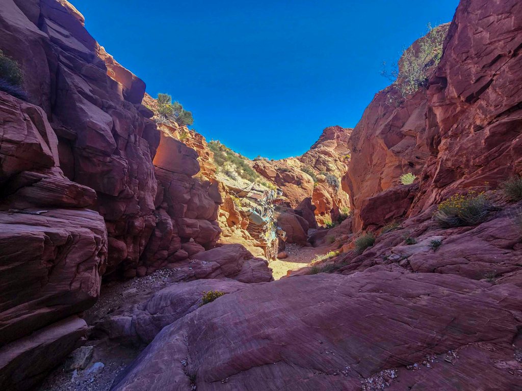 Po przejściu około 1,4 mili wchodzimy do kanionu The Wire i idziemy mały kawałek w nadziei, że uda nam się zejść na dół bez obchodzenia przeszkody „obwodnicą”.