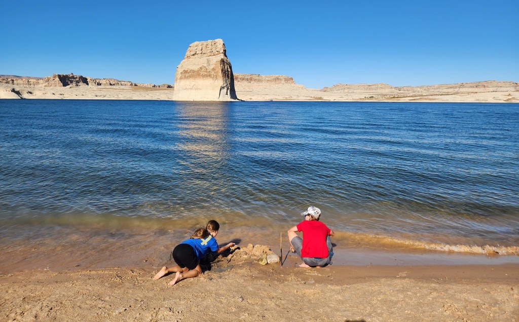 Tak rozgrzani postanawiamy podjechać do Lone Rock Beach położonej (nad jeziorem Powell), żeby się nieco ochłodzić. Powell lake leży na terenie Glen Canyon National Recreation Area ($30/auto lub N.P. pass). Dojazd do plaży jest po drodze piaszczystej, także należy bardzo uważać, by się nie zakopać…