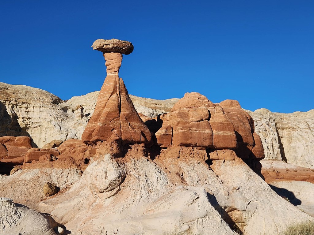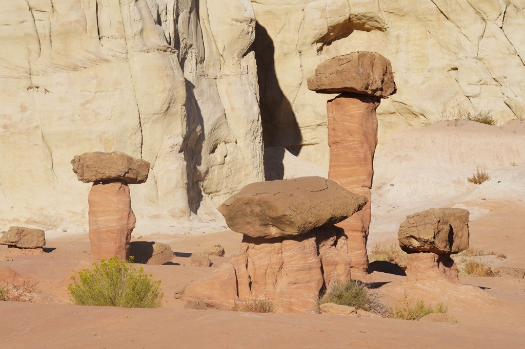 Odporniejszy na erozję kamień na wierzchu, chroni miększą skałę u podstawy. Ta nierównowaga w odporności na erozję powoduje, że w miarę upływu czasu tworzy się charakterystyczny „kapelusz” (kształtem przypominający grzyb) oparty na niewielkim „trzonie” zaliczanym do miększej skały.