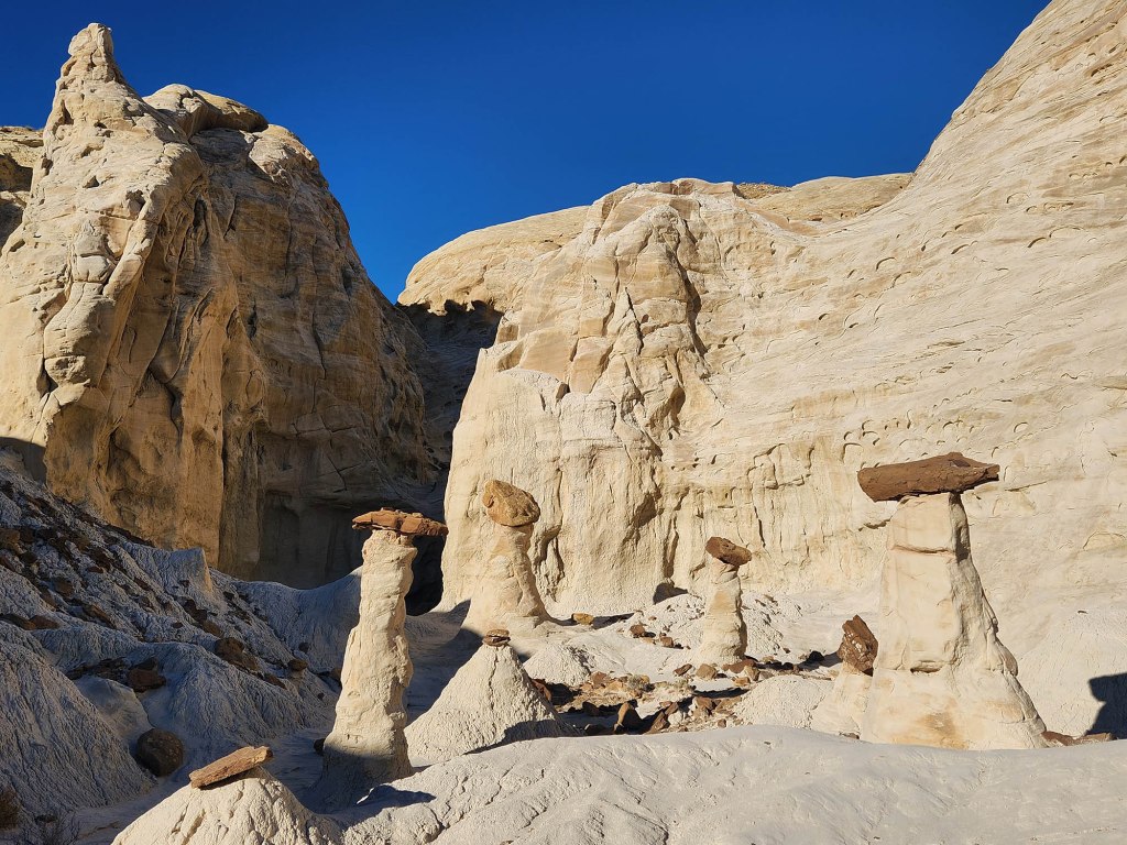 Październik to najlepszy czas na jesienne wagary 😊, które poniekąd stały się naszą coroczną tradycją. Dzięki mniejszej liczbie turystów i niższym temperaturom powietrza, tworzą się idealne okoliczności na zwiedzanie tego pustynnego stanu. Podczas naszej pięciodniowej wycieczki skupiamy się przede wszystkim na penetrowaniu kanionów szczelinowych (slot canyons) oraz widowiskowych formacji skalnych zwanych grzybami skalnymi czy iglicami (hoodoos). Spotykamy też na swojej drodze kilku przedstawicieli lokalnej fauny takich jak tarantula czy wąż żarłoczny. Zjawiskowe formacje skalne podkręcane intensywnym światłem zachodzącego słońca pozostaną na długo w naszych podróżniczych umysłach i sercach…..
