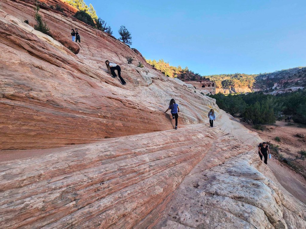 Zawracamy i wędrujemy Wire pass aż do przepaści, gdzie Tomek podrzuca dzieci na „górną półkę” a my – ludzie starsi i nieco przy kości 😊 decydujemy się znowu na przejście obwodnicą.