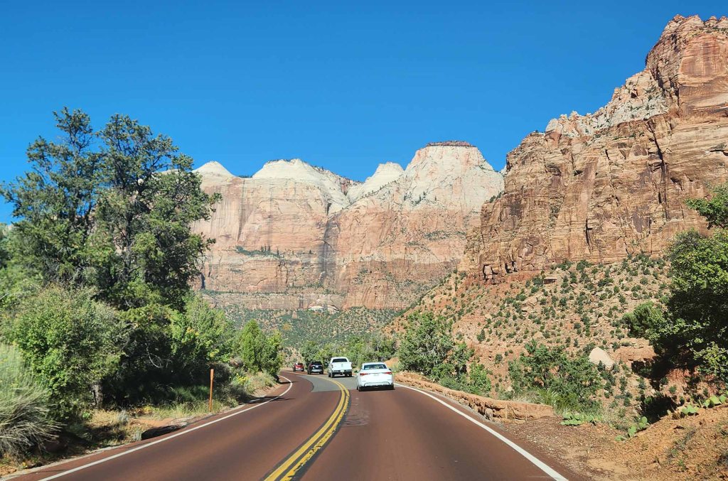 Wyruszamy w kierunku Las Vegas, skąd późnym wieczorem odlatuje nasz samolot do Chicago. Wybieramy ciekawszą i ale dłuższą drogę (#9) prowadzącą przez Zion National Park ($35/auto lub N.P. Pass).