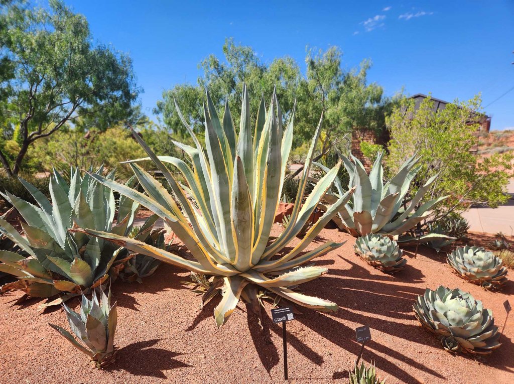 Pierwotnie mieliśmy spotkać się z resztą znajomych na parkingu pod Visitor Center, ale jest to niemożliwe z powodu tłumowiska i korków na parkingu. Wyjeżdżamy więc z parku i jedzeiemy do St. George – do miejskiego miniogrodu botanicznego – Red Hills Desert Park (znajdującego się na terenie Pioneer park).