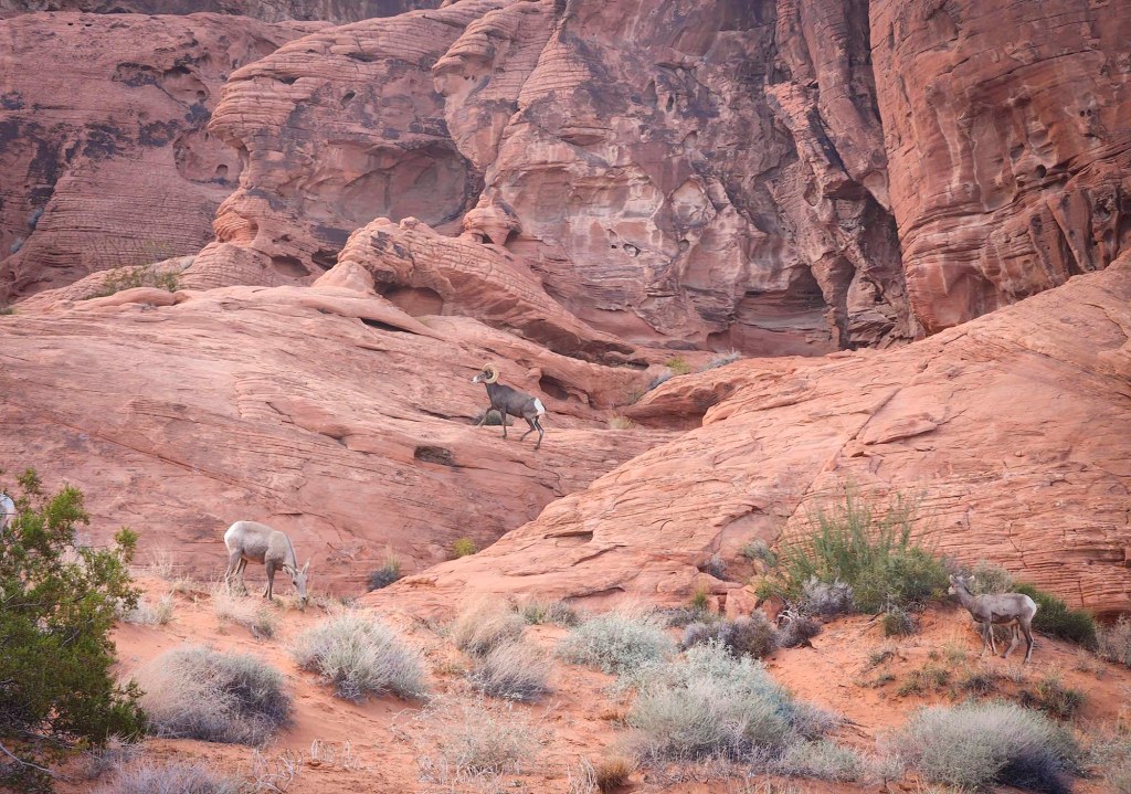 I tuż przed samym wjazdem spotykamy stado pasących się i skaczących po wzgórzu owiec wielkorogich – big horn sheeps.