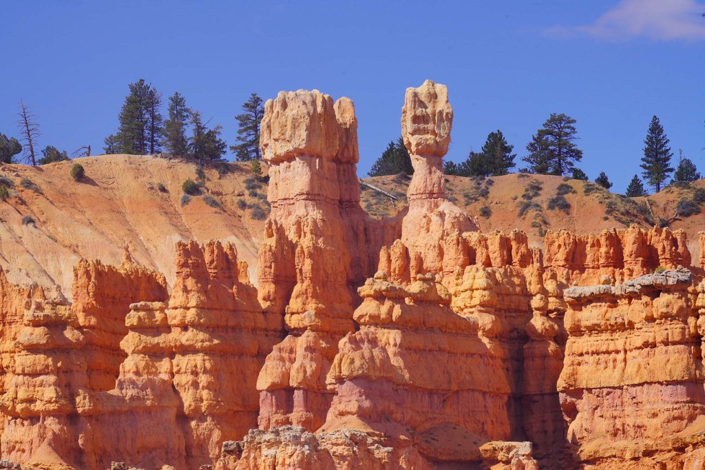 Bryce Canyon, (który wbrew swojej nazwie nie jest wcale kanionem), jest „zbiorowiskiem” gigantycznych naturalnych amfiteatrów złożonych z tzw. hoodoos (położonych wzdłuż wschodniej strony płaskowyżu Paunsaugunt).