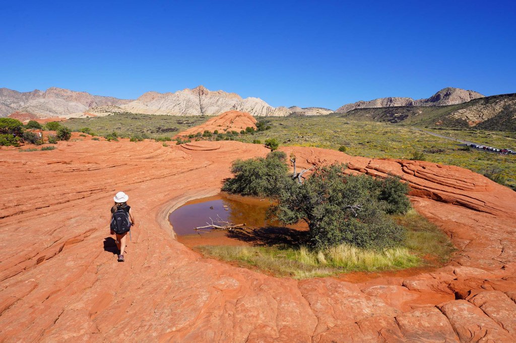 Pomimo krótkiego dystansu do przejścia (długość szlaku 1.5 mili) zabieramy bardzo dużo butelek wody – (przyda się każda jej ilość)… przez koleje półtorej godziny będziemy dosłownie maszerować po „patelni”.