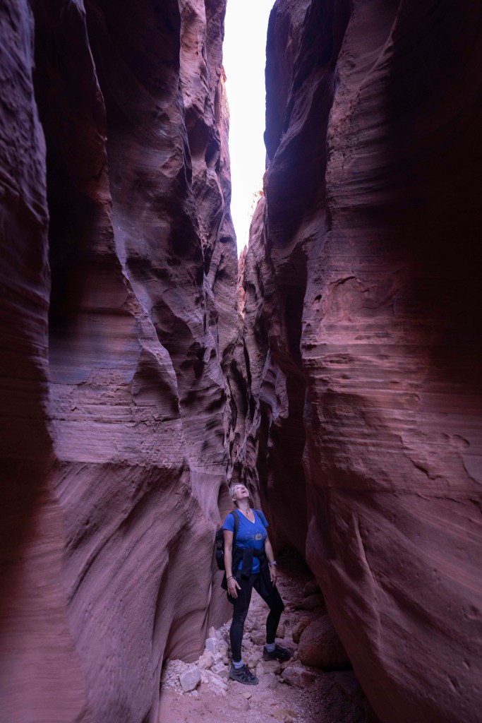W przeciwieństwie do kanionu Wire Pass, który jest dość krótki, Buckskin Gulch ciągnie się wiele mil, a w części środkowej jest znacznie wyższy i okazały.