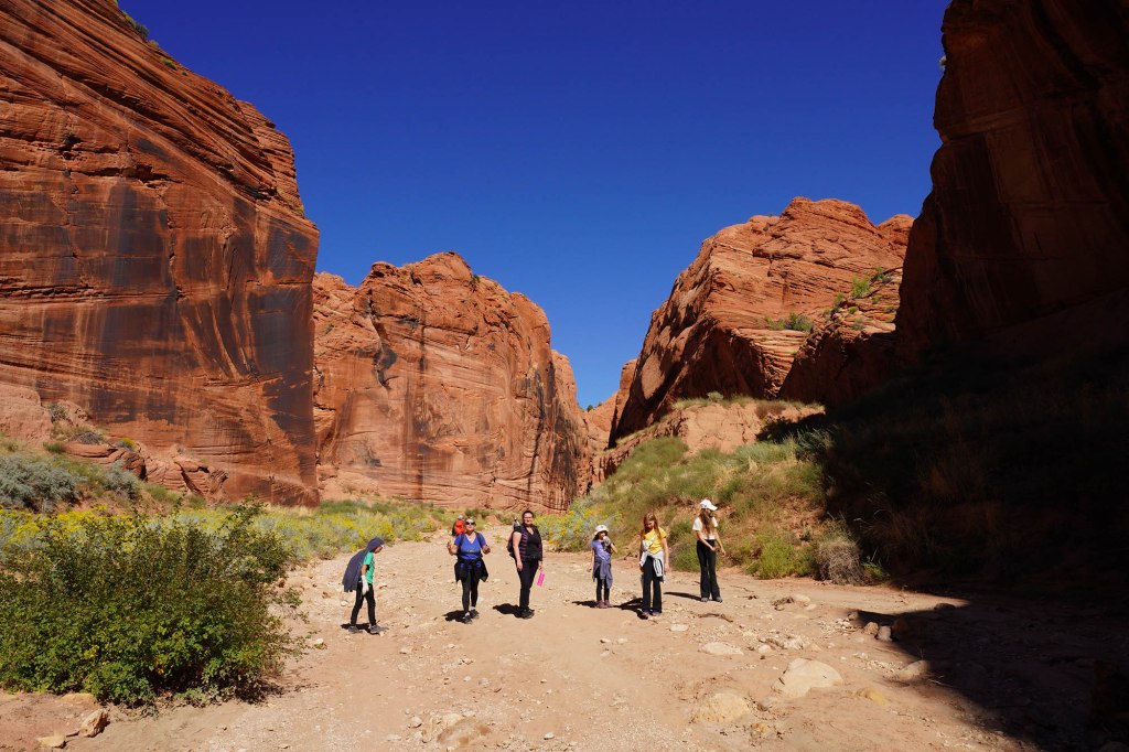 W powiększonej już o 4 kolejne osoby (Renia, Sara, Ala i Tomek) grupie podróżniczej jedziemy odwiedzić najdłuższy kanion szczelinowy na świecie Buckskin Gulch (a w zasadzie tylko jego niewielką część). Dojazd do parkingu skąd wychodzi szlak Buckskin Overlook via Wire Pass and Buckskin Gulch jest szutrową drogą (nieprzejezdną podczas opadów deszczu ze względu na miejscami gliniaste podłoże). Z głównej 89-tki skręcamy na południe w House Rock Valley Road i jedziemy 8.4 mile do wielkiego parkingu znajdującego się po prawej stronie drogi.