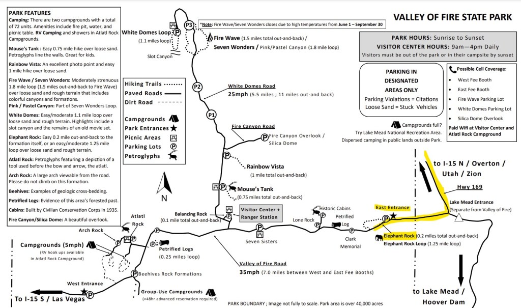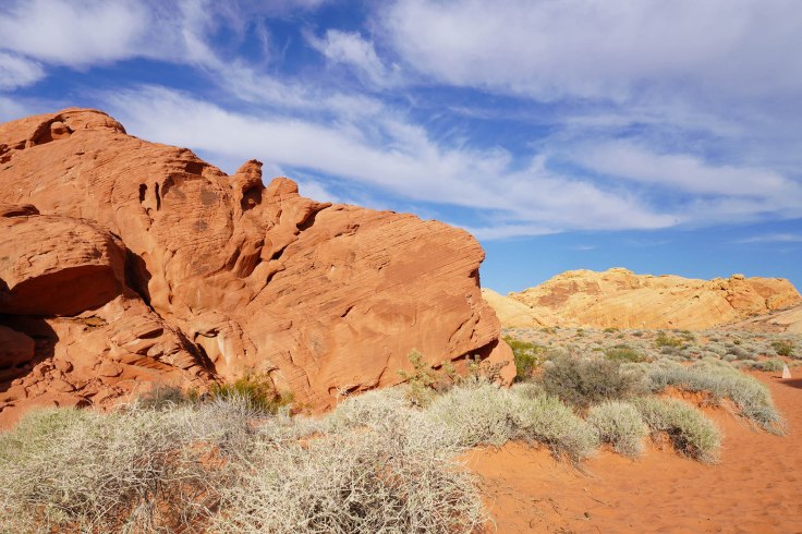 i wyruszamy w kierunku Nevady do Valley of the Fire State park ($15/auto). Ponieważ wjeżdżamy od wschodu zaczynamy od szlaku Elephant Rock trail….