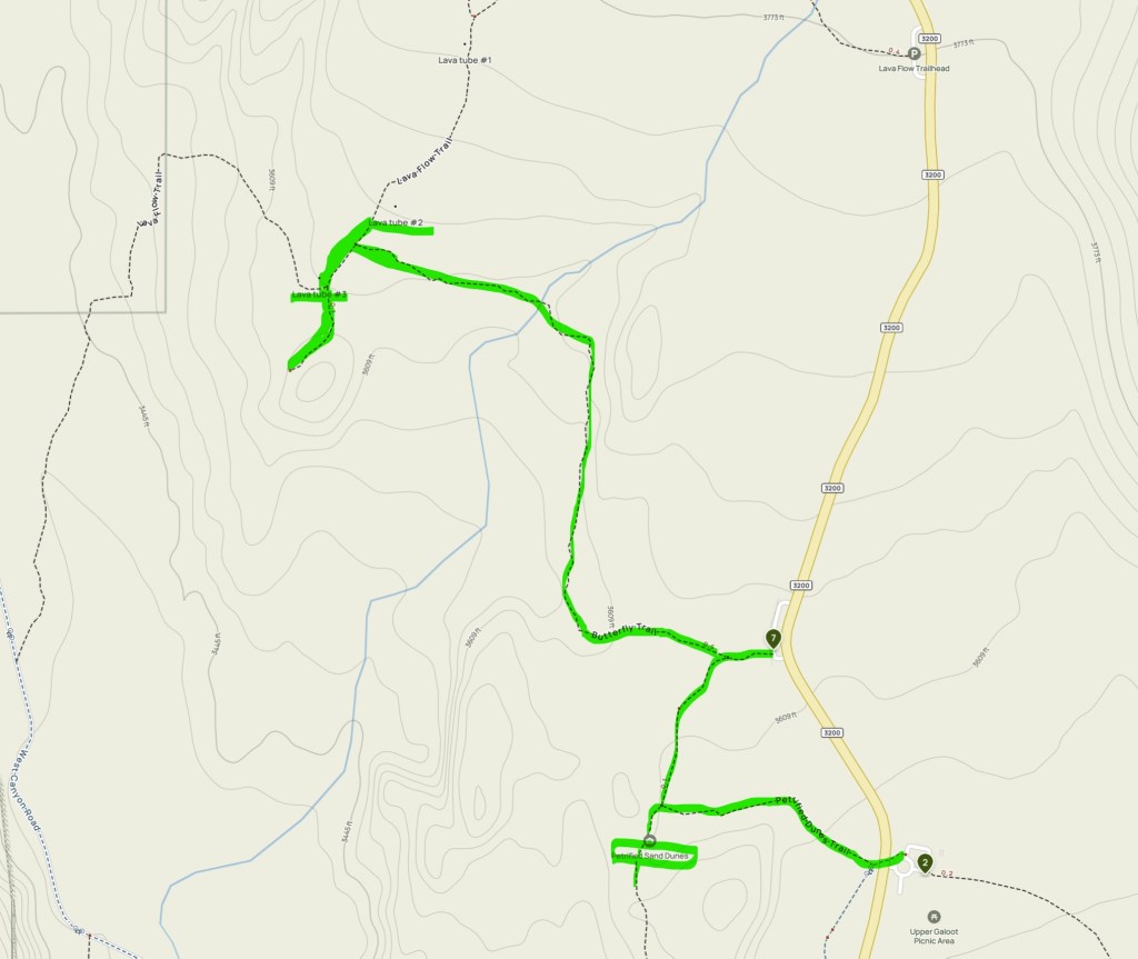 Kolejnym szlakiem, którym wędrujemy jest w zasadzie połączenie 3 szlaków: Petrified Dunes trail, Butterfly i Lava Flow Overlook.