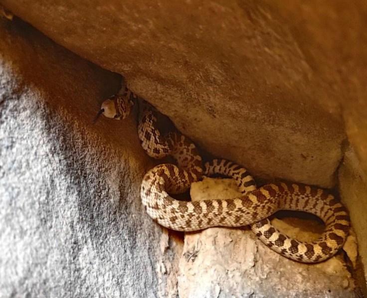 Jest to na szczęście niejadowity wąż żarłoczny – Gopher snake, przypominjący nieco grzechotnika.