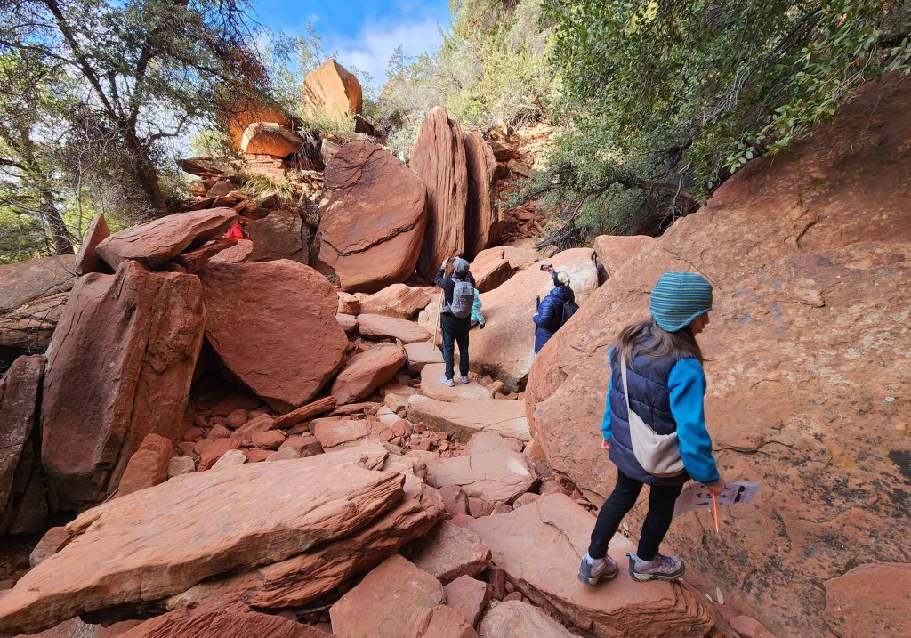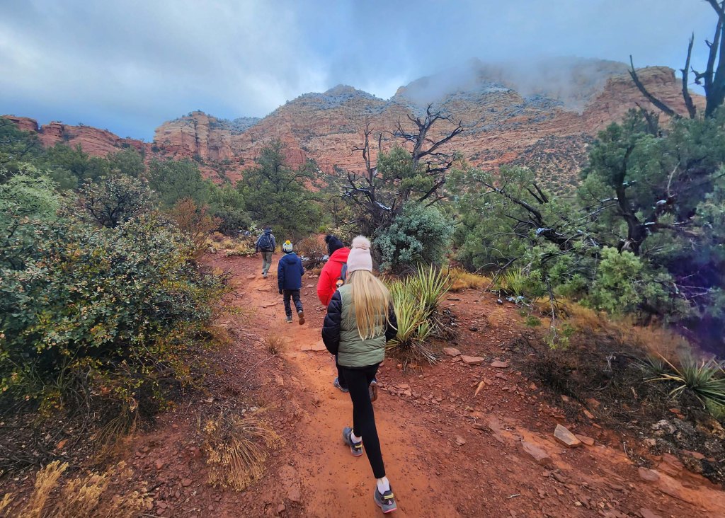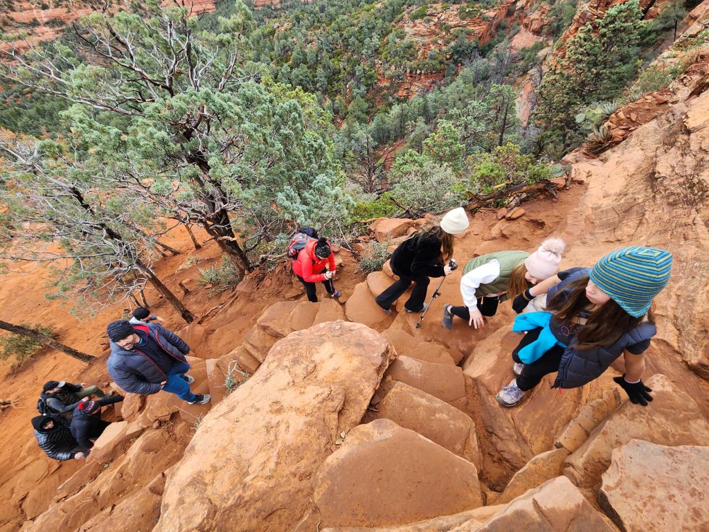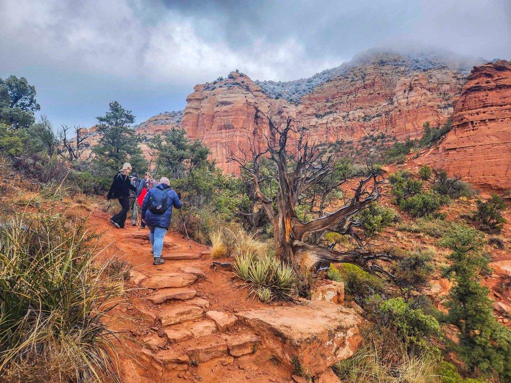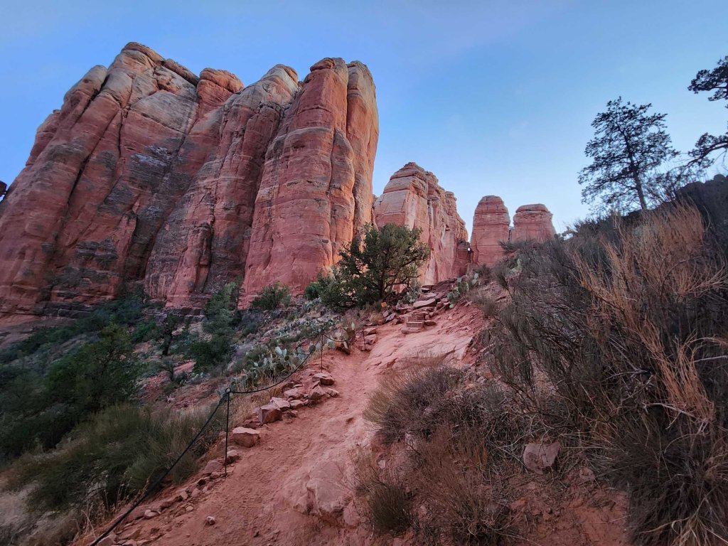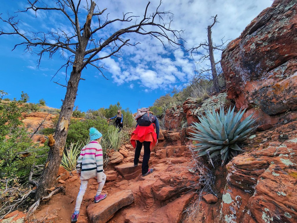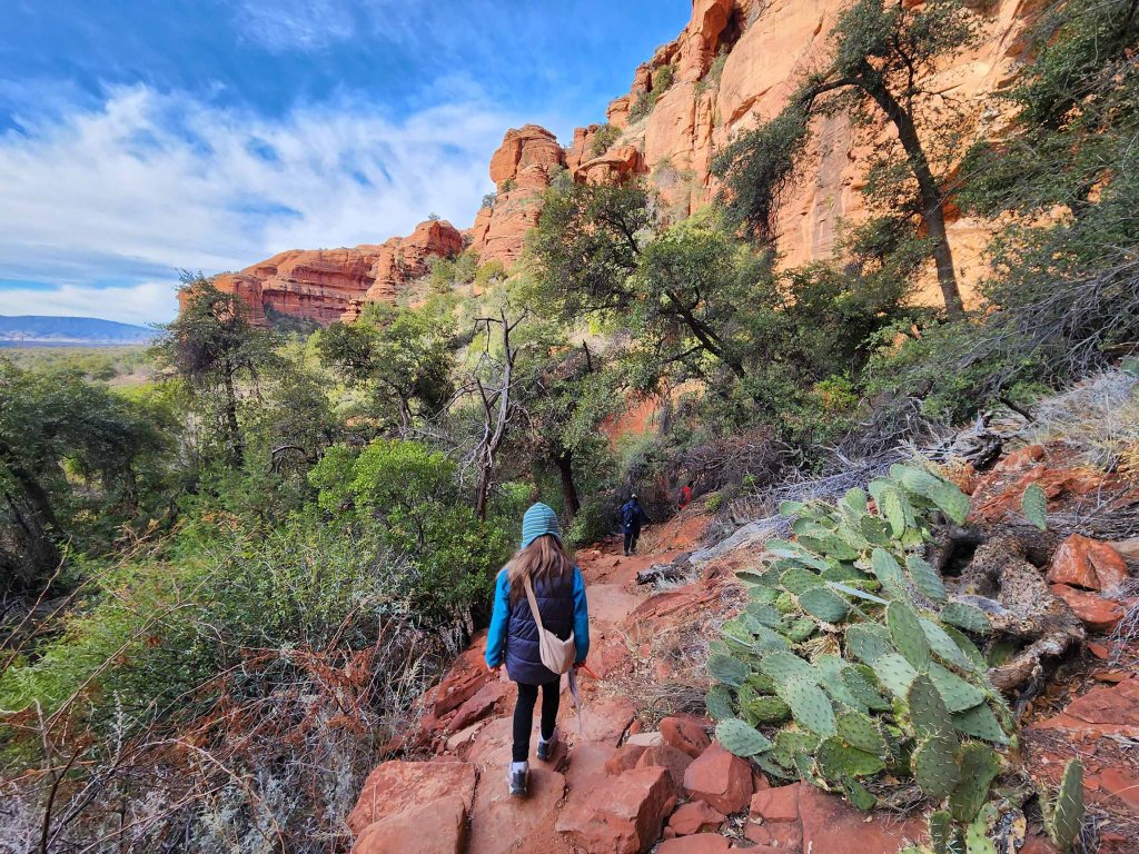 Tą stromą ścieżką wspinamy się na szczyt mesy, skąd rozciągają się panoramiczne widoki na otaczające nas formacje Verde Valley i urzekające krajobrazy Coconino National Forest.
