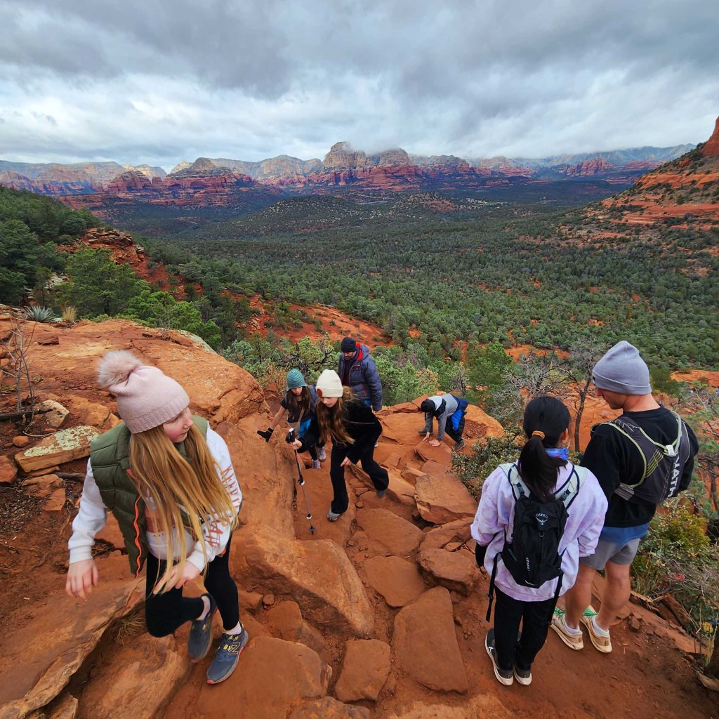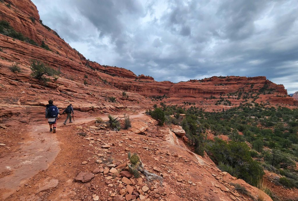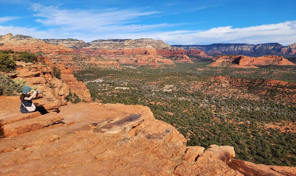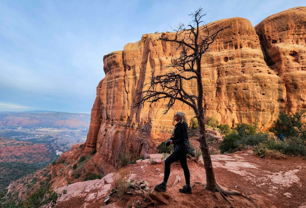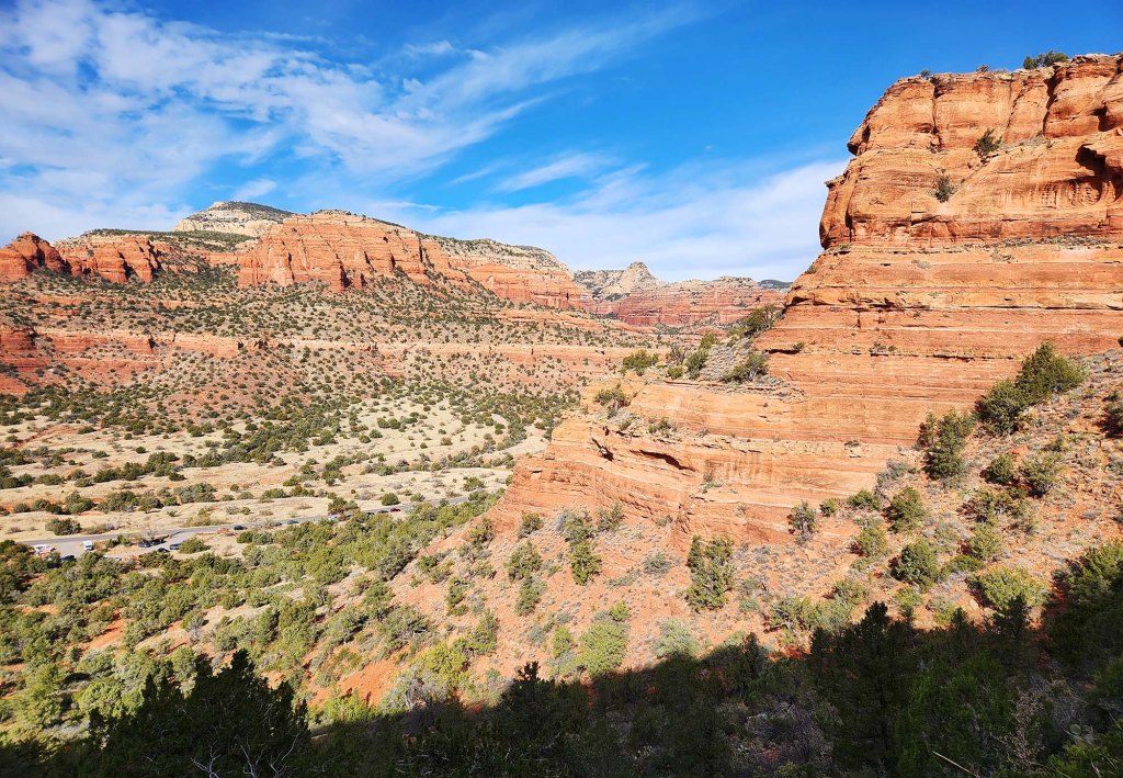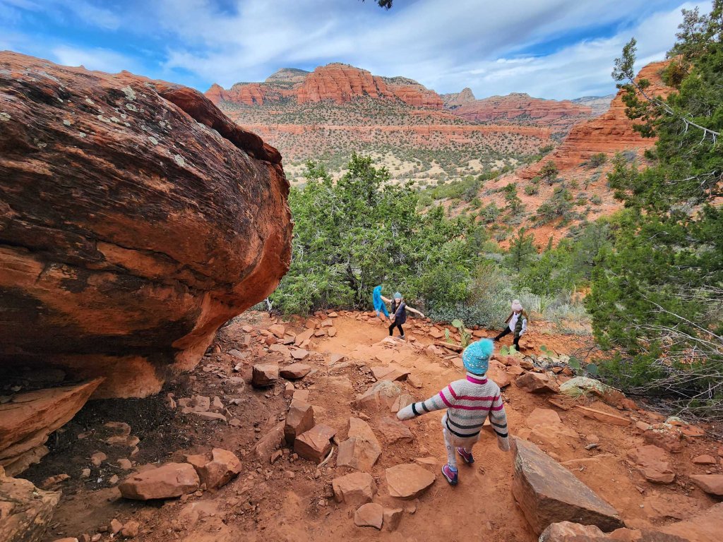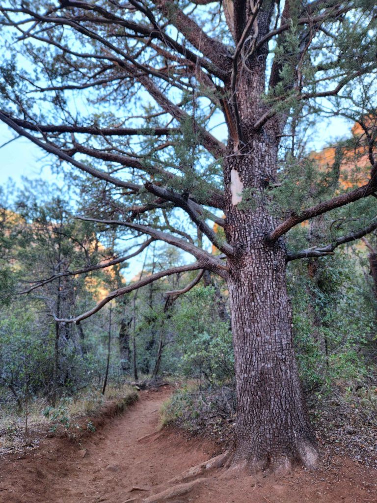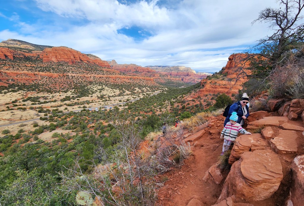 Tą stromą ścieżką wspinamy się na szczyt mesy, skąd rozciągają się panoramiczne widoki na otaczające nas formacje Verde Valley i urzekające krajobrazy Coconino National Forest.