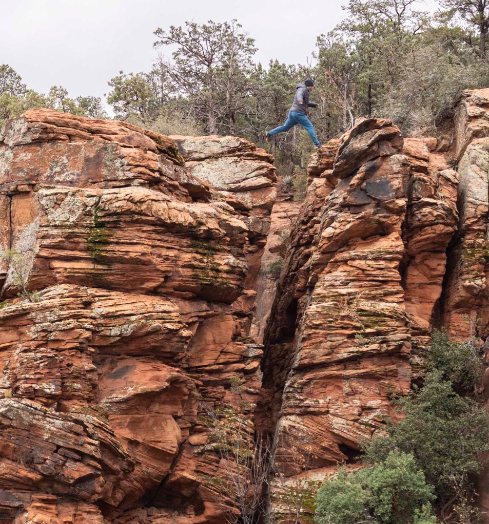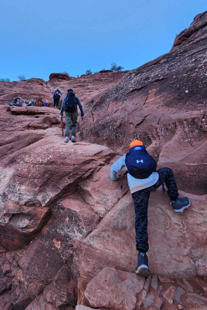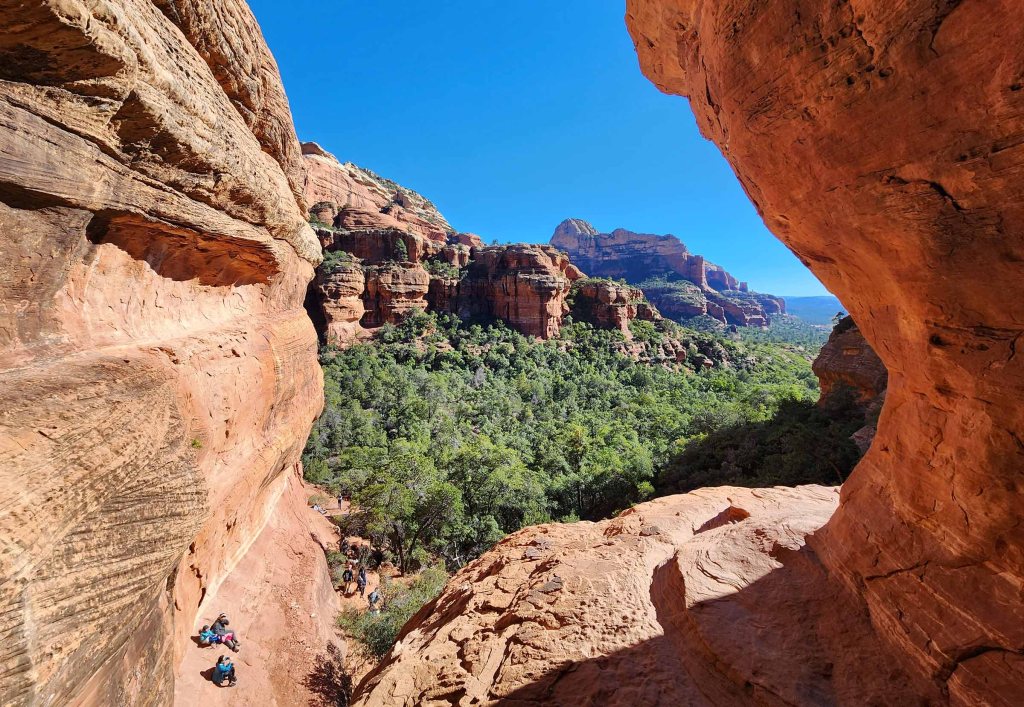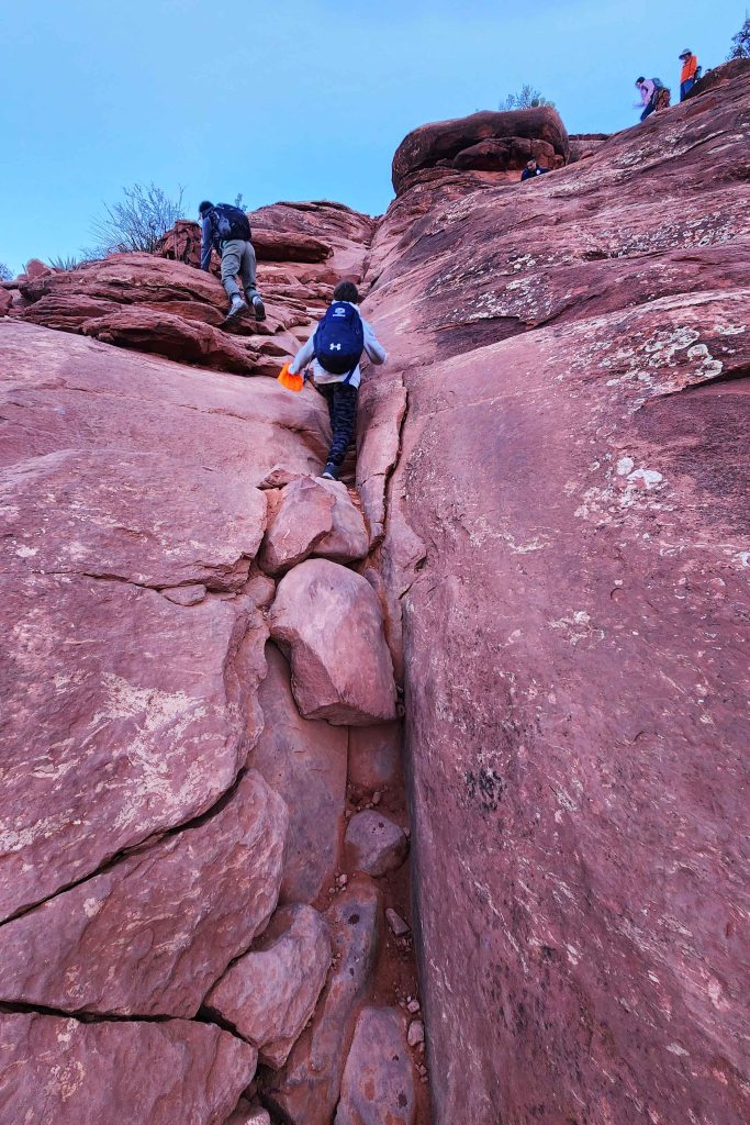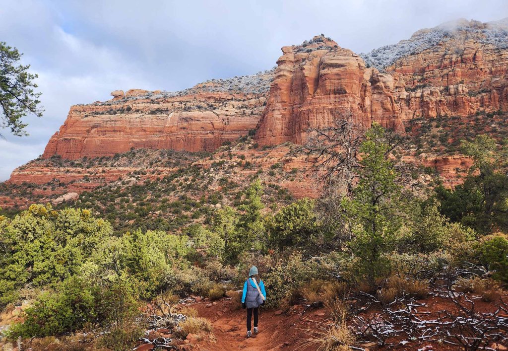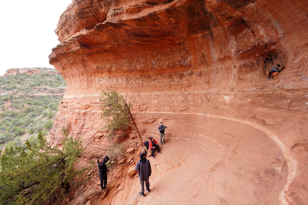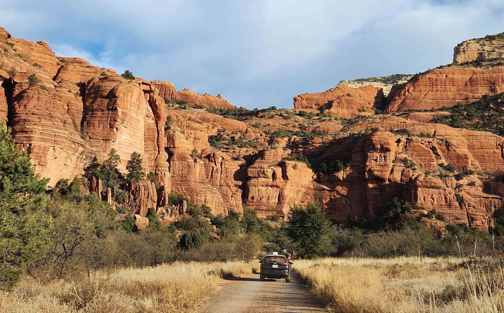 Tą stromą ścieżką wspinamy się na szczyt mesy, skąd rozciągają się panoramiczne widoki na otaczające nas formacje Verde Valley i urzekające krajobrazy Coconino National Forest.