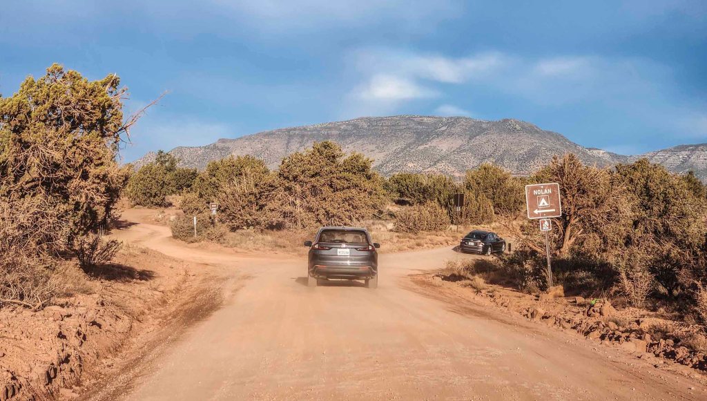 Dojazd do parkingu, skąd wychodzi szlak jest szutrową, ale dobrze utrzymaną drogą (Peralta Road).