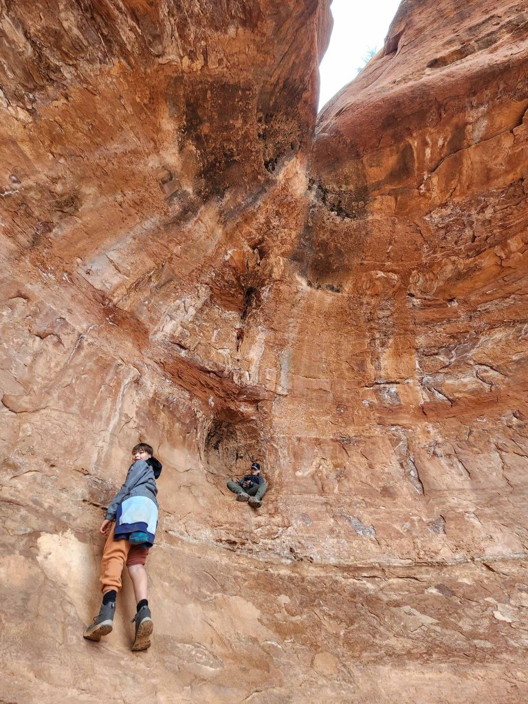 Wspinaczka do małego zagłębienia w jaskini udaje się niestety tylko najmłodszym…