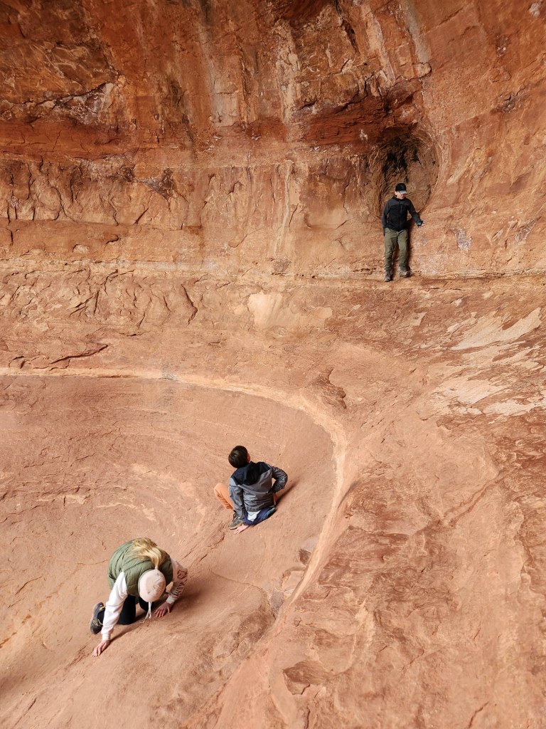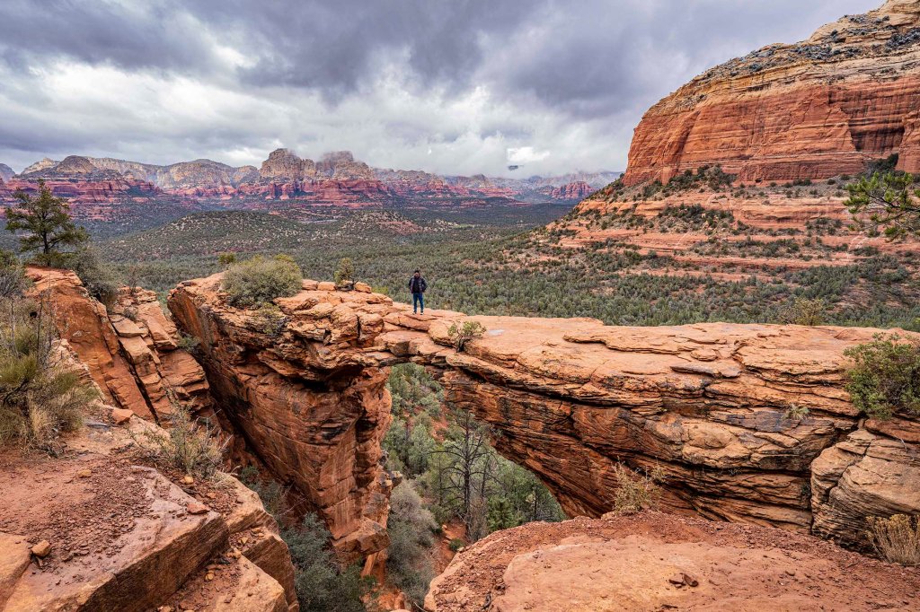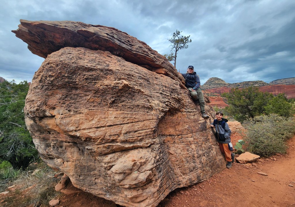 My spokojnie czekamy w miejscu widokowym rozkoszując się otaczającymi nas górami…. i Standą stojącym na moście😊. Schodzimy w dół mijając dziesiątki turystów – to jeden z najczęściej uczęszczanych szlaków Sedony.