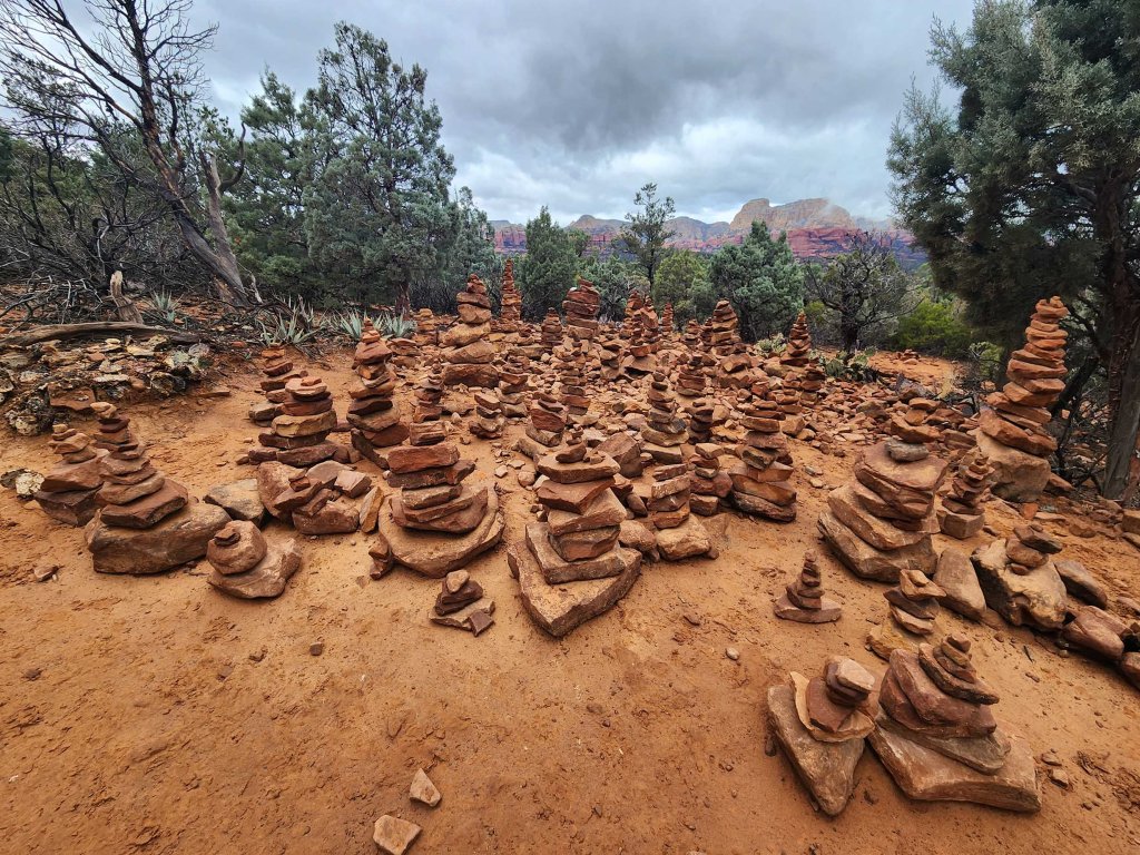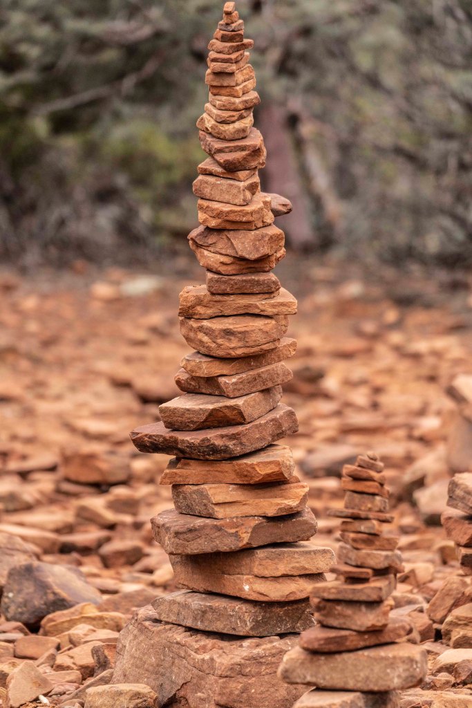 Wdrapując się po coraz bardziej stromej ścieżce mijamy kilka miejsc z kamiennymi wieżyczkami.