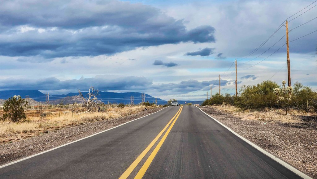Rano w strumieniach deszczu opuszczamy Arizonę…….