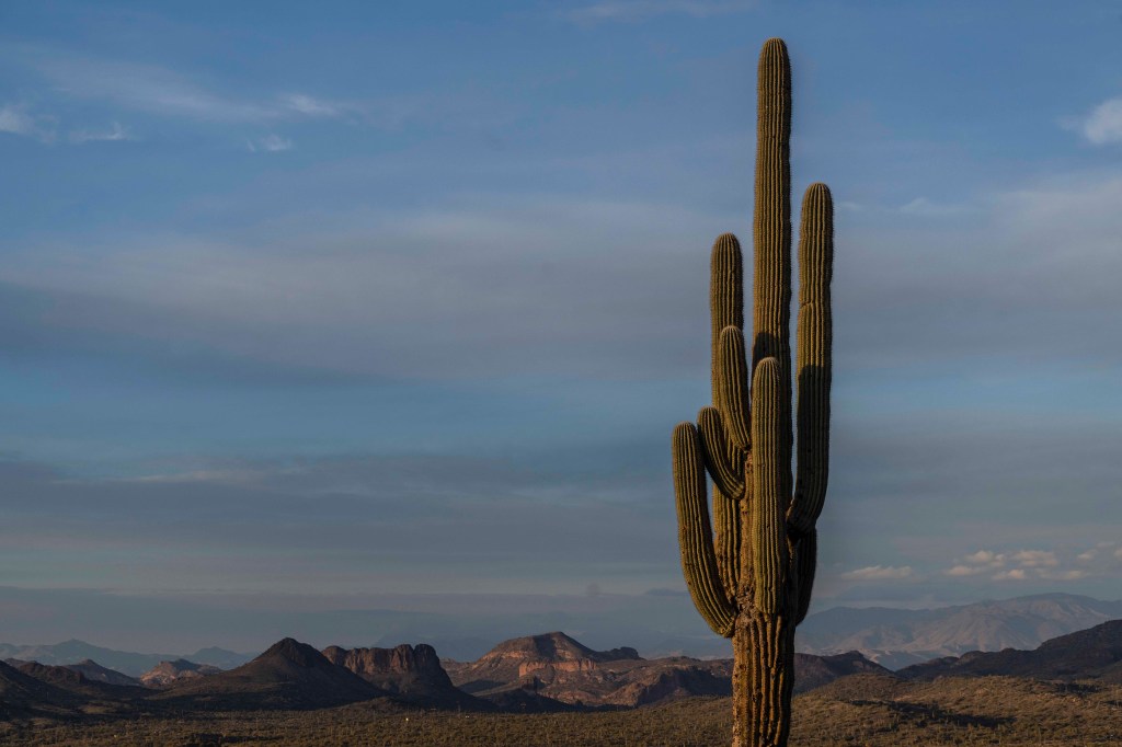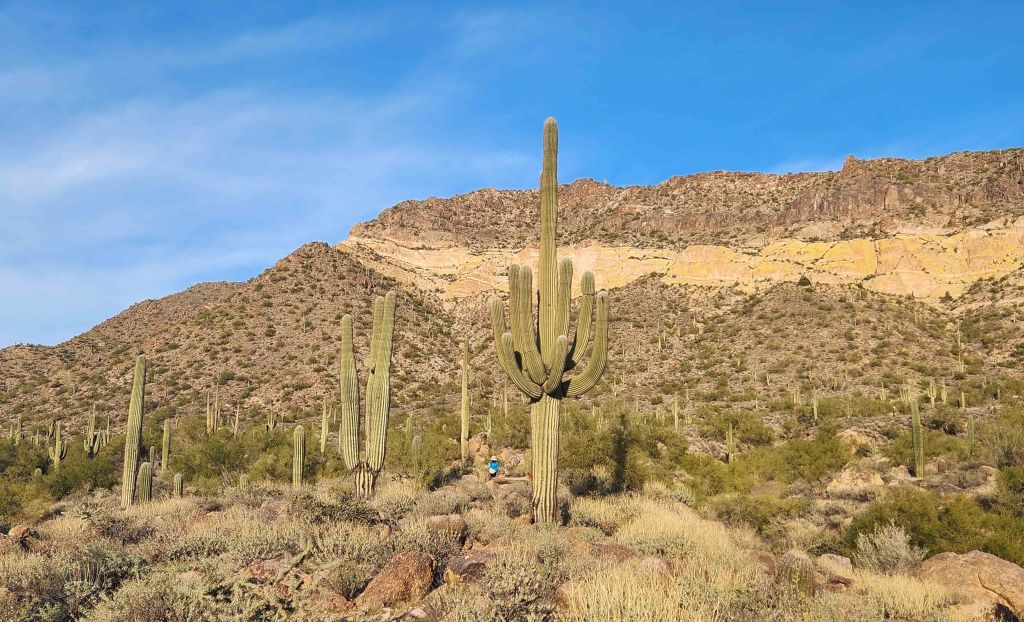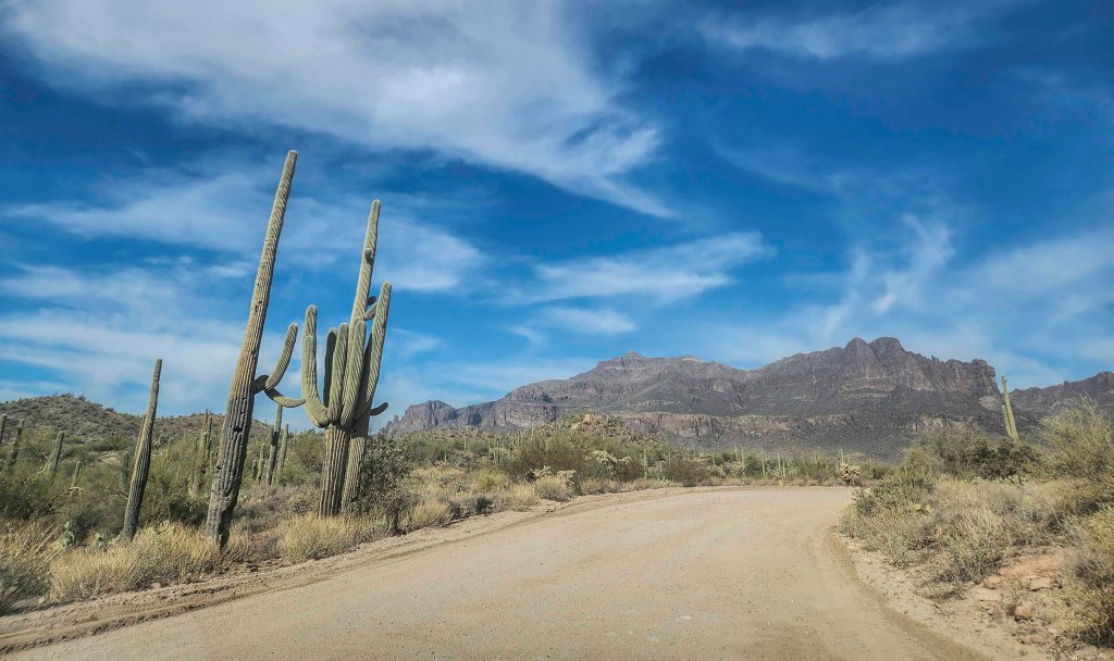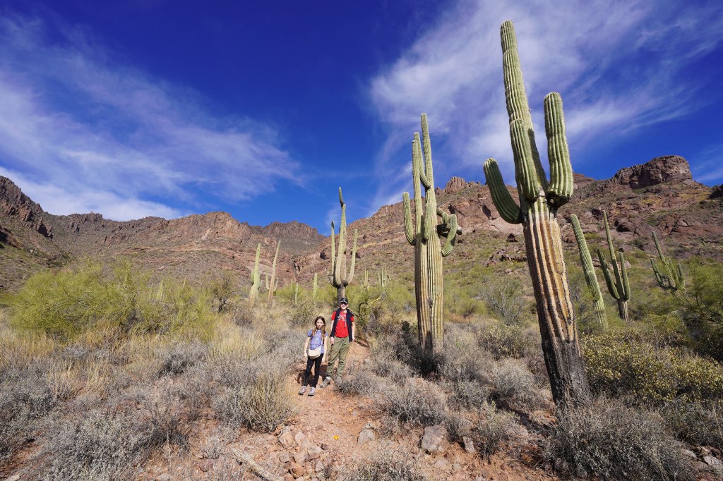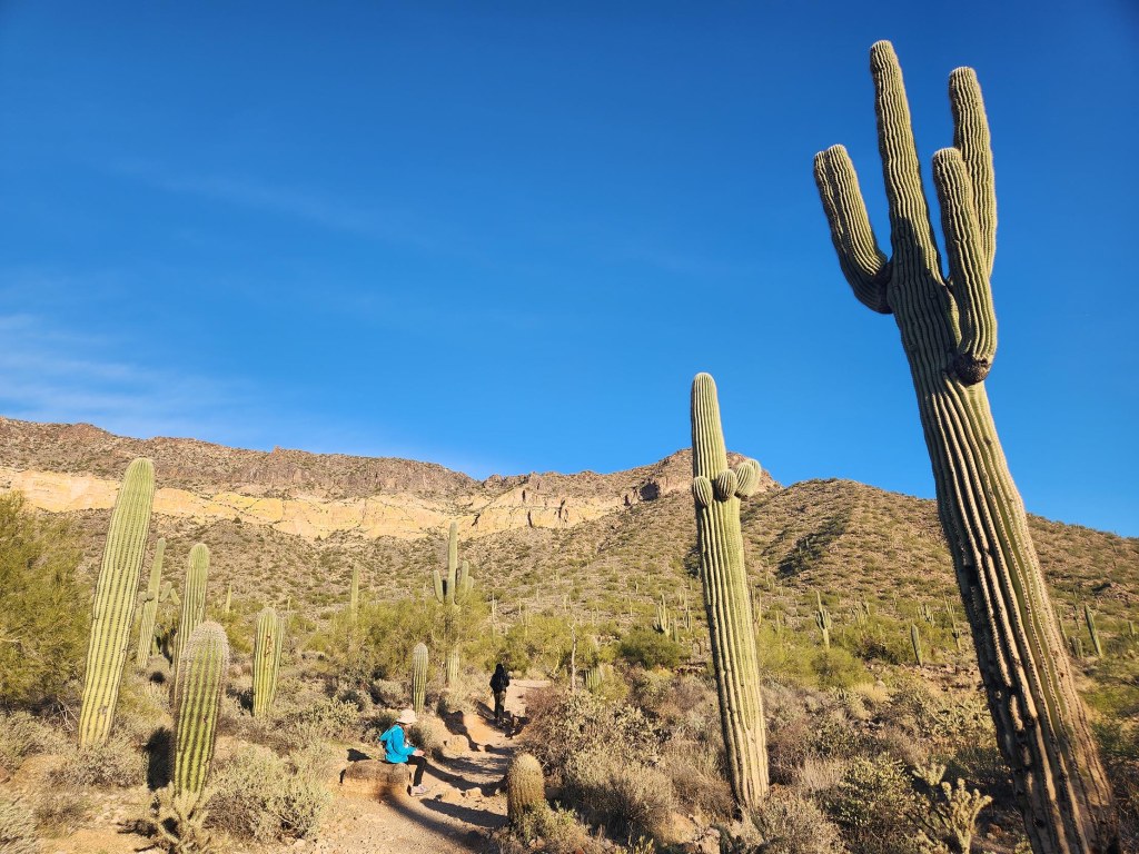 Delikatnie wznosimy się pod górę, mijając majestatyczne saguaro rozsiane po pustyni.