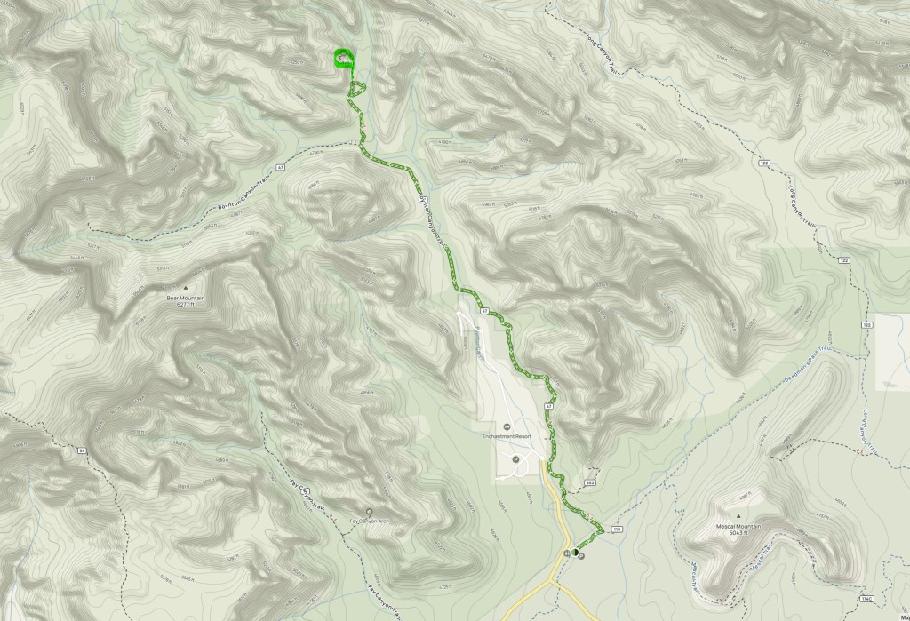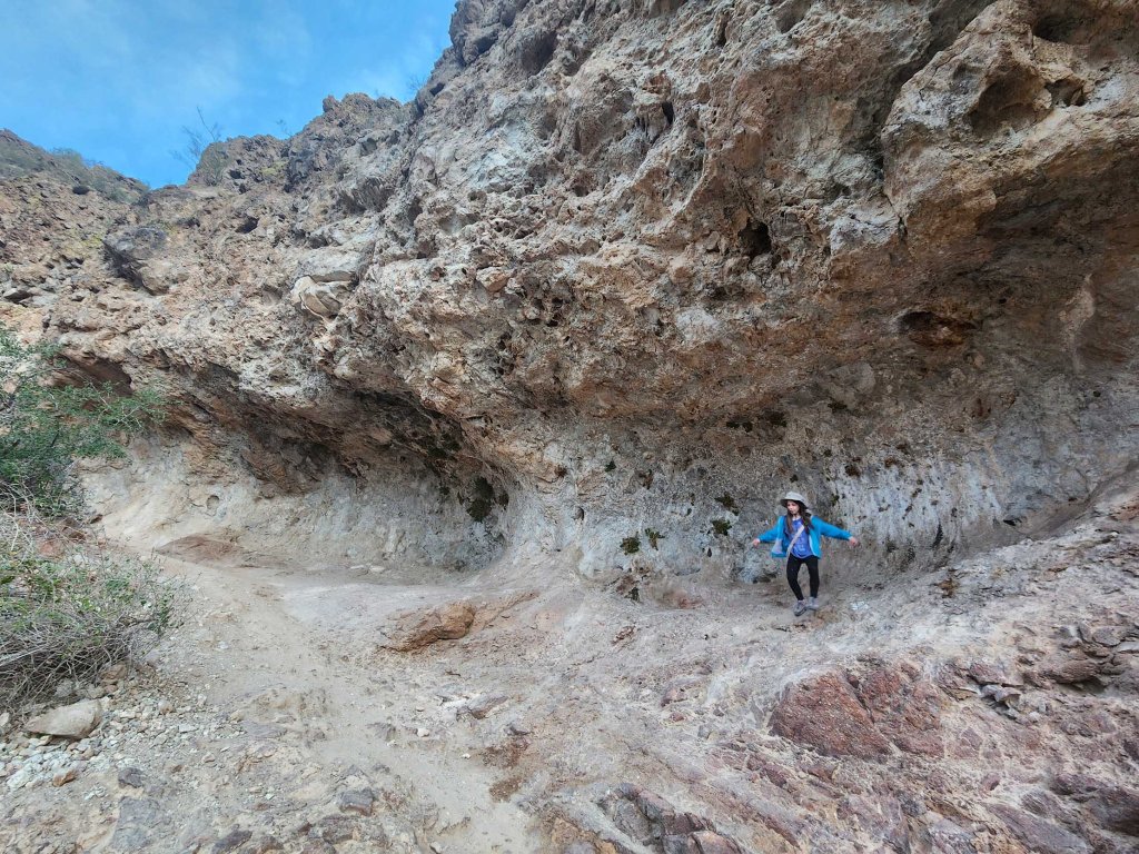 Długość szlaku do jaskini i z powrotem to 1,9 mili. Ja z Jankiem i Luką dodatkowo łączymy ten szlak z pętelką Mescal trail loop (długość 4,4 mile).