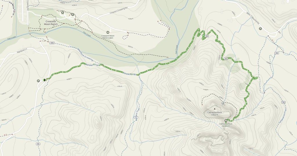 Przechodzimy przez drogę i idziemy dalej przez kilkaset metrów, aż dochodzimy do początku szlaku, który zaczyna się przy przełęczy Baldwin i biegnie wzdłuż potoku Oak Creek.
