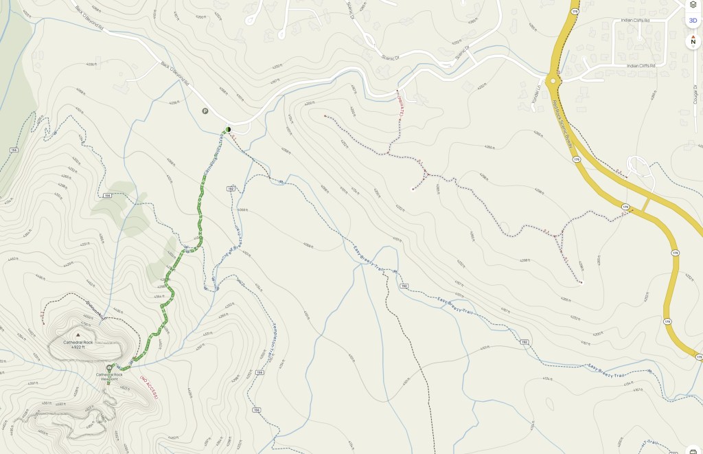Szlak prowadzi nas do skrzyżowania z Catherdal Rock trail i dalej zaczyna się już prawdziwa wspinaczka 😊.