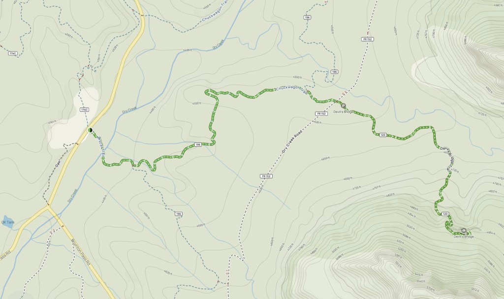 Początkowo wędrujemy Moscal trail #174C, następnie skręcamy w lewo w Chuckwagon trail#196.