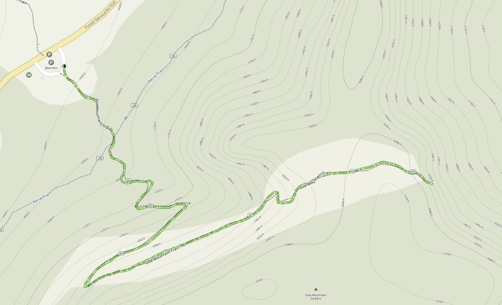 Jedziemy dalej do kolejnego szlaku – Doe Mountain trail (długość1,5 mili, przewyższenie 511 ft).