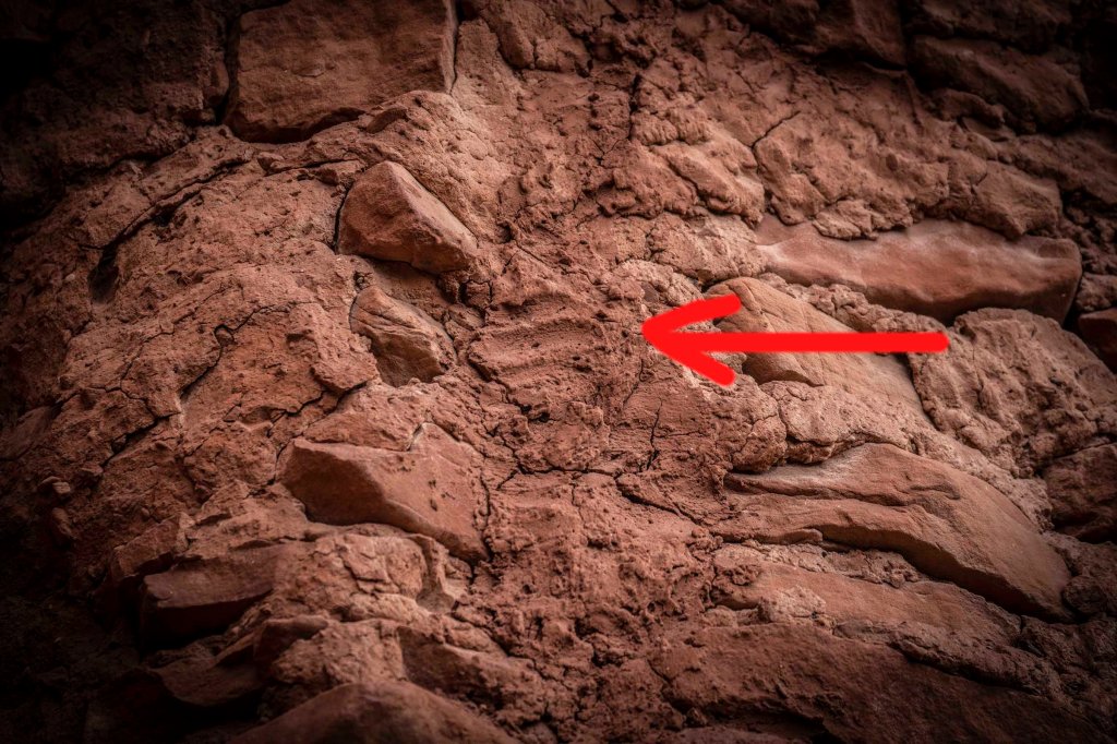 Przewodnik pokazuje nam nawet miejce, gdzie można dostrzec oryginalne „odciski” dłoni budowniczego, który lepił to pueblo 🙂