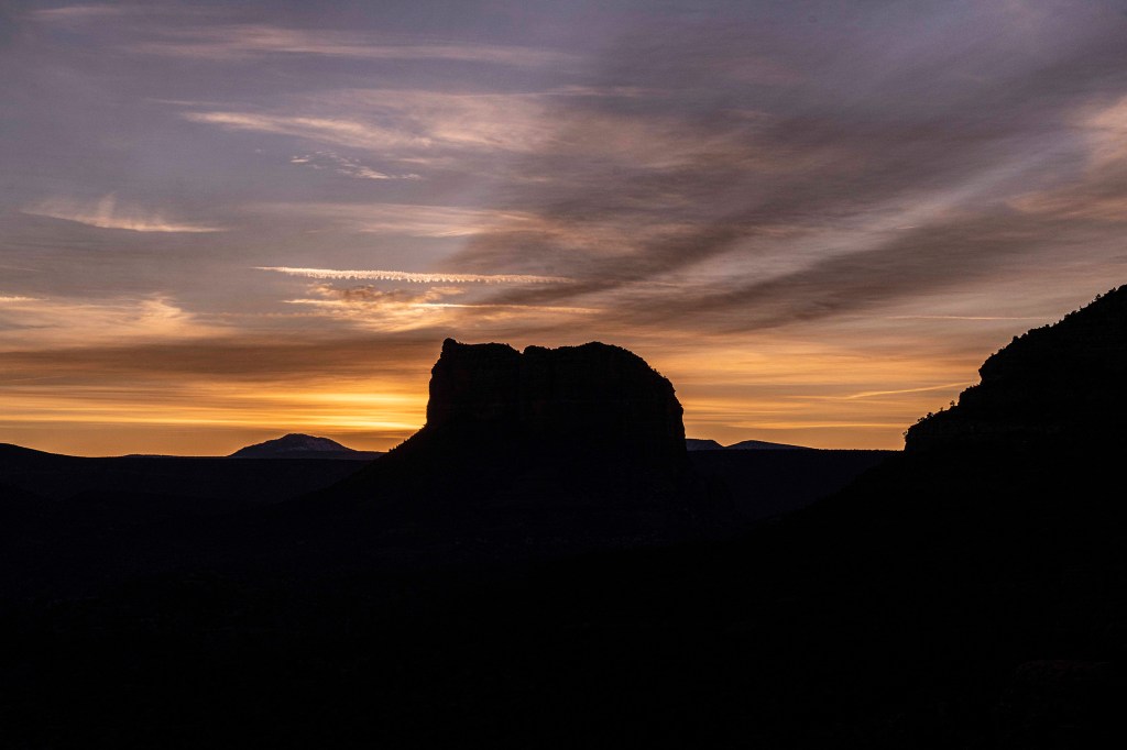 Przed świtem, w totalnych ciemnościach, wyruszamy na podbój Cathedral Rock. Naszym celem jest parking – Park and Ride (B) – North SR179, skąd o 7 rano odjeżdża pierwszy autobus (shuttle bus), dowożący turystów do wyjścia na szlak (parking G). Wschód słońca zawsze jest tutaj bardzo widowiskowy, więc by na niego zdążyć dosłownie wbiegamy pod górę, łapiąc z trudem oddech.