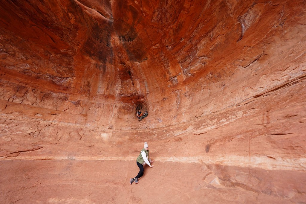 Po wdrapaniu do jaskini odwracamy się o 180 stopni i podziwiamy rozległe widoki na roztaczające się przed nami czerwone piaskowce.