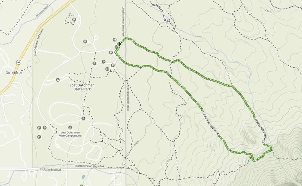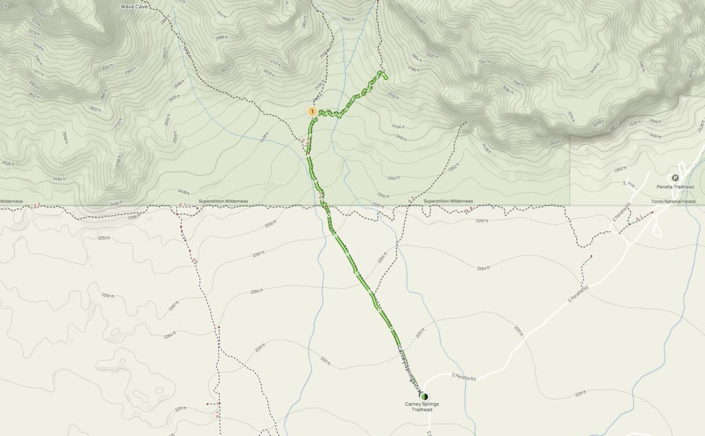 Jedziemy dalej na kolejny szlak Shaka Cave via Carney Springs (długość 2,5 mili, przewyższenie 416 ft).