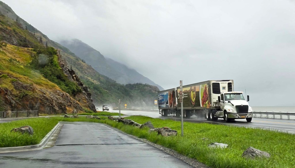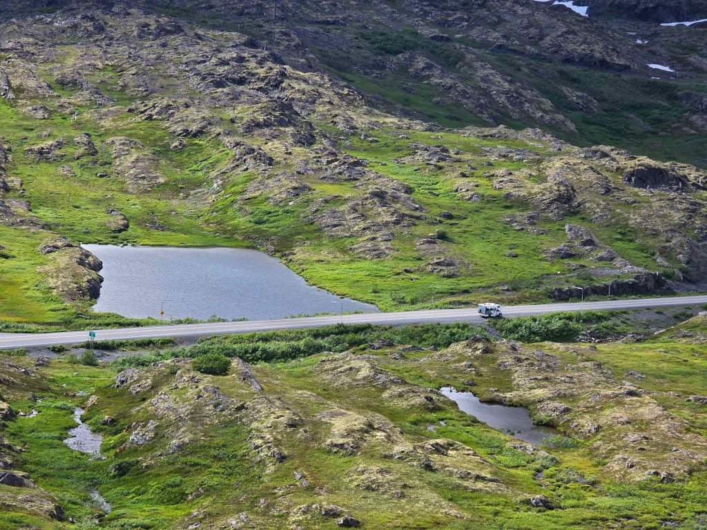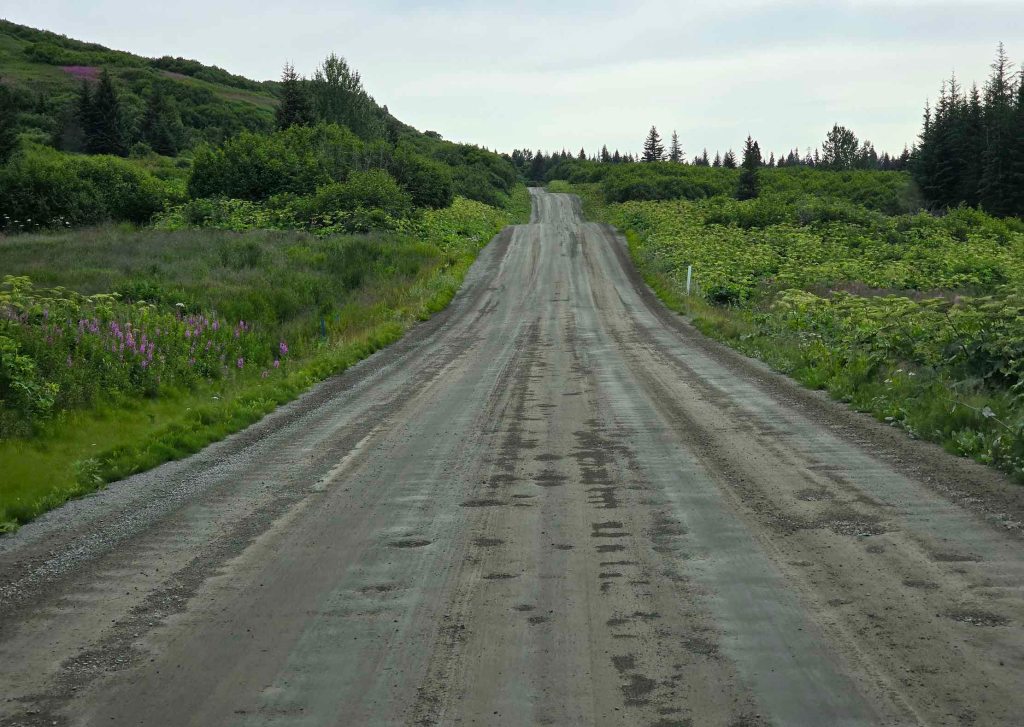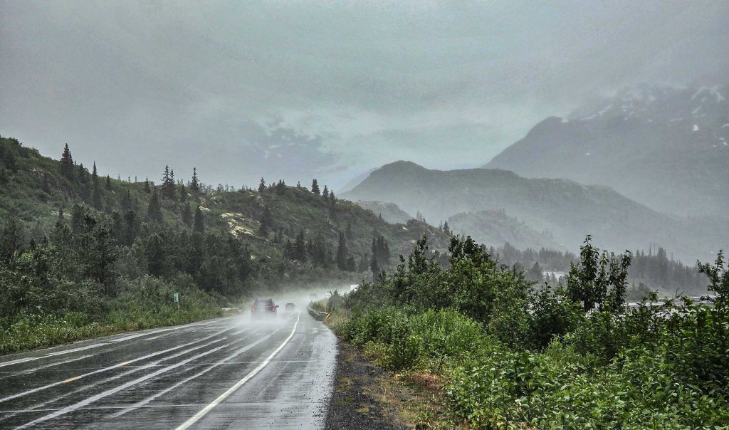Jedziemy w kierunku południowym (Seward Hwy) cały czas w lejącym deszczu, zatrzymując się na nocleg na rest area tuż po przejechaniu przez przełęcz Turnagain (mila 69).