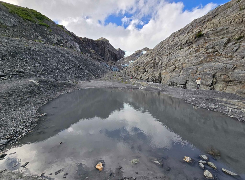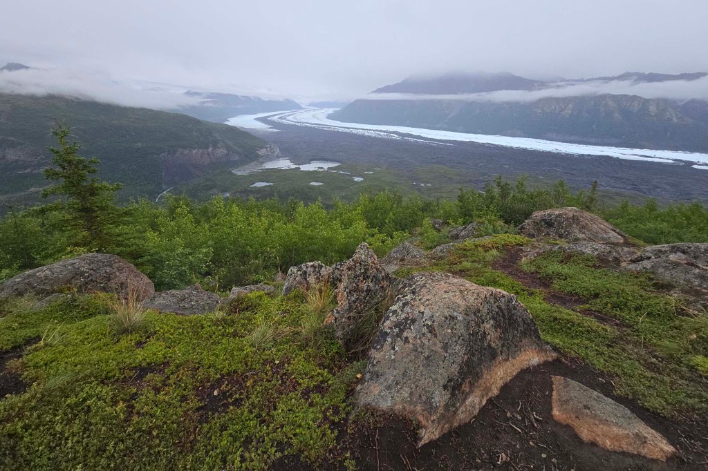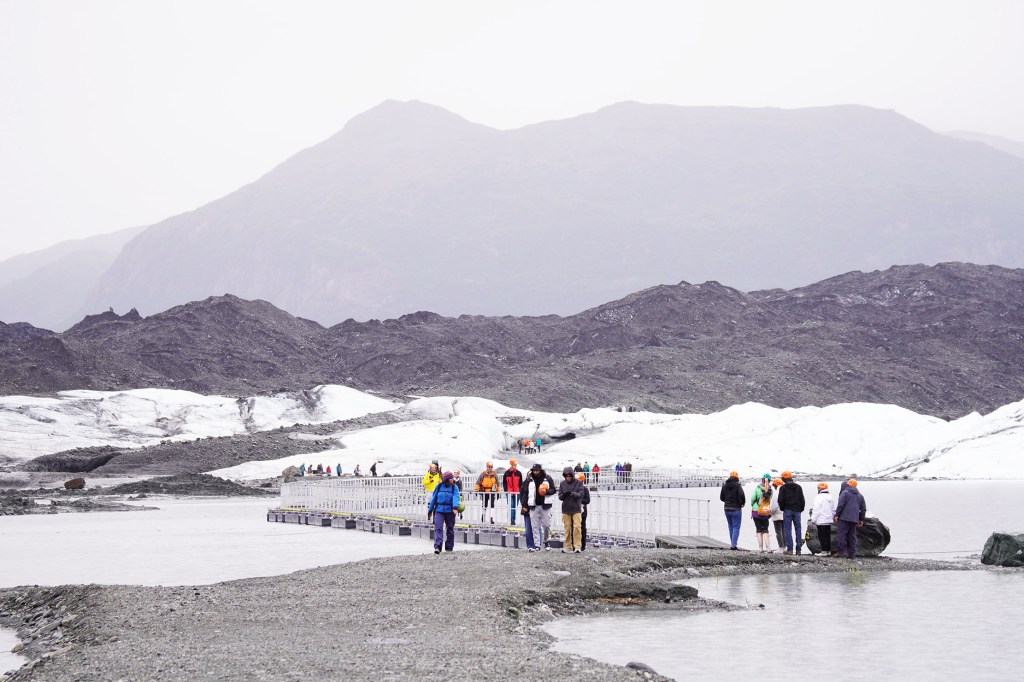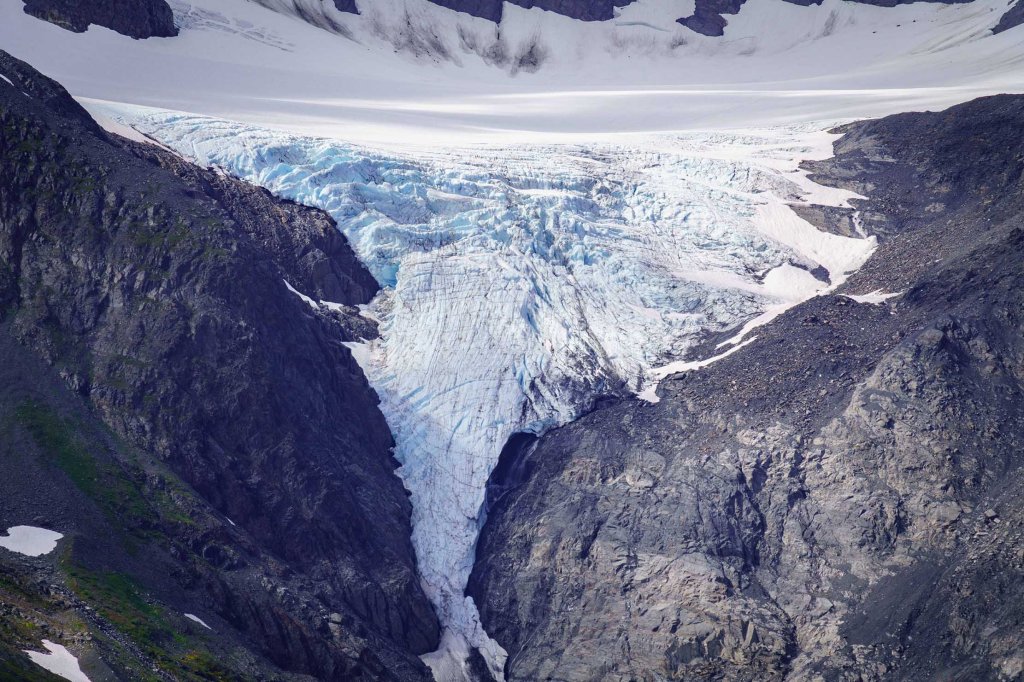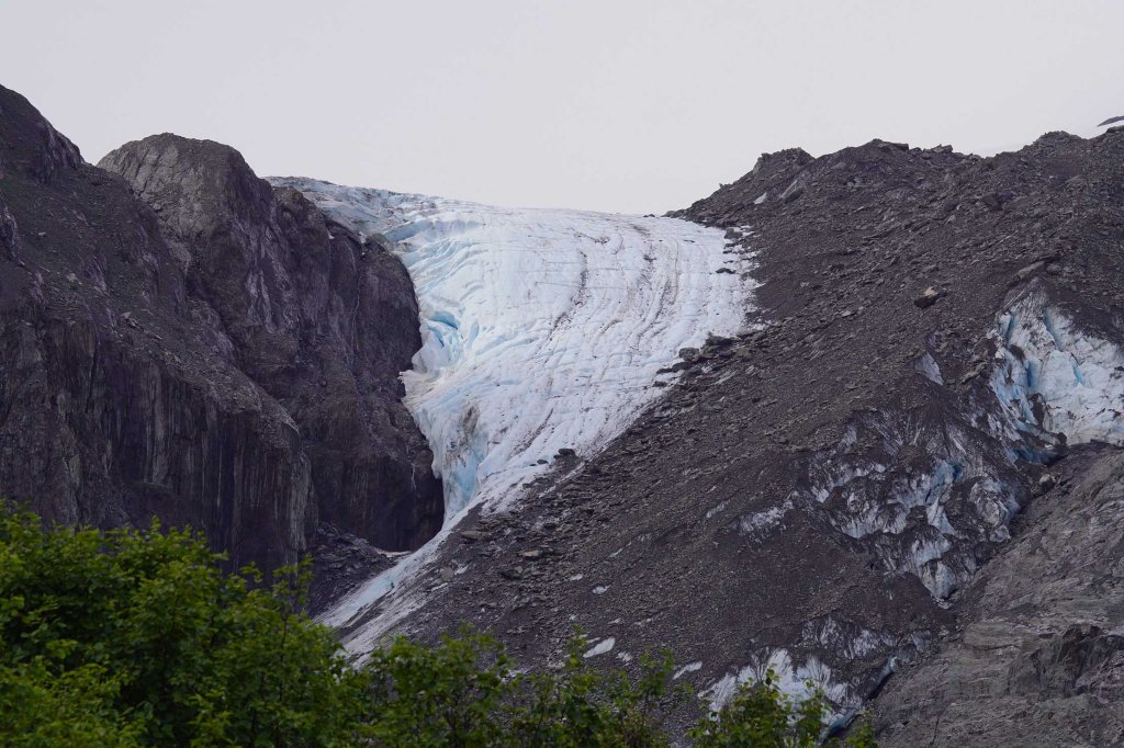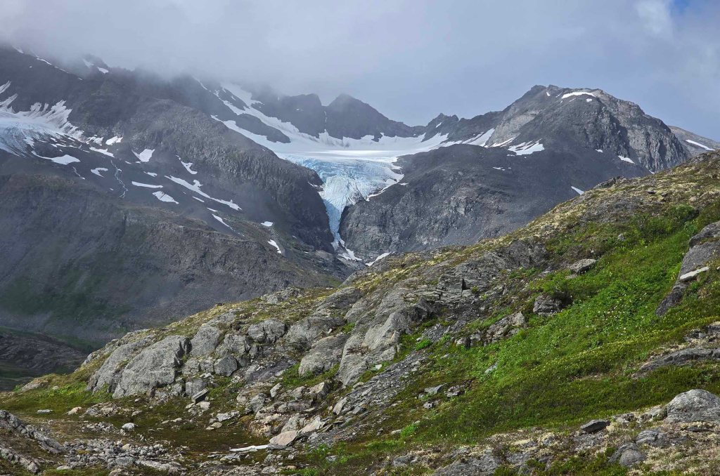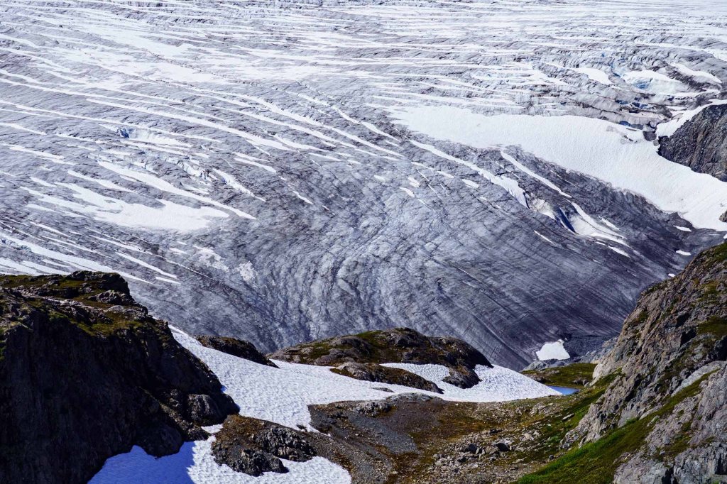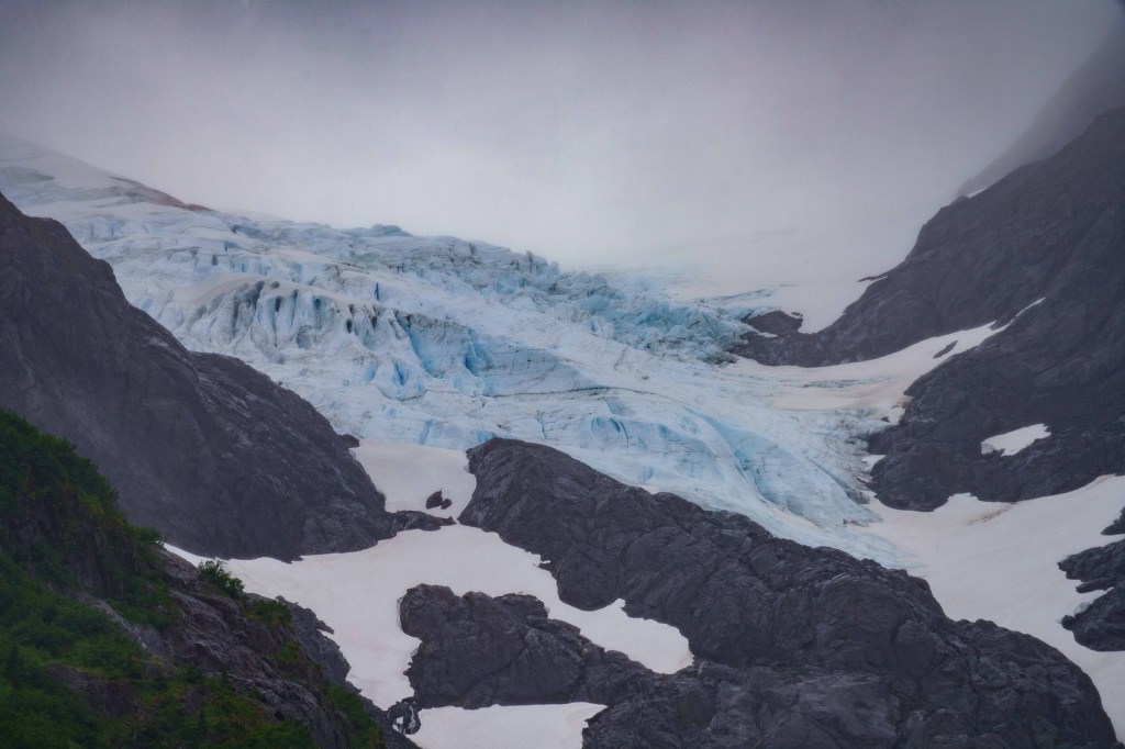 Pomimo słabej widoczności i deszczu, szlak jest prawdziwą petardą. Widok z góry na całe wielkie cielsko lodowca rzuca na kolana.