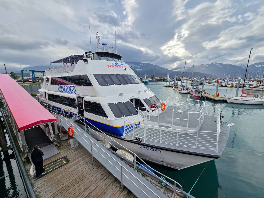 Budzimy się o świcie i jedziemy dalej na południe w kierunku miasteczka Seward, skąd wypływamy na siedmiogodzinny rejs statkiem wycieczkowym (Kenai Fjords National Park Cruise) (MAJOR MARINE TOURS http://www.majormarine.com). Zbiórka i rejestracja odbywają się w lobby hotelu Harbor 360 o godzinie 8.30am. (Rejs 9.30am-5pm, Parking $10/auto/dzień naprzeciwko hotelu). W cenę biletu rejsowego wliczony jest lunch – kanapka plus deser oraz nielimitowana kawa i herbata. (Koszt biletu na 3 osoby wyniósł $540 (dzieci do 11 roku płacą połowę, wieku dzieci nikt nie weryfikuje więc można troszkę pokombinować, $240 dorośli/ $120 dzieci plus opłaty i podatki). Na statku mamy przydzielony stolik z numerem, ale poruszać możemy się po wszystkich 3 poziomach.