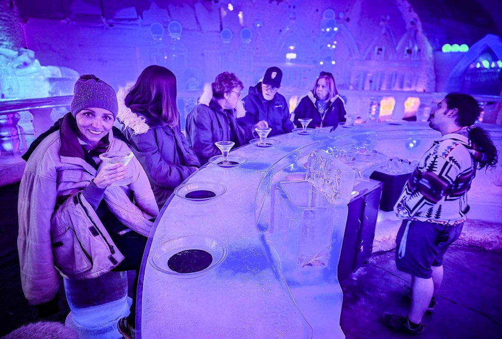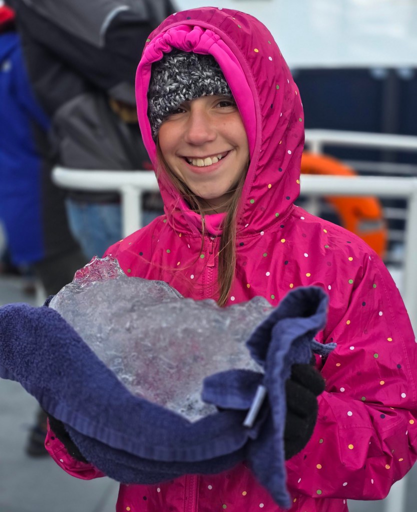 Przy lodowcu Aialik załoga wyławia z wody kawałek góry lodowej, co następnie w rozdrobnionych kawałkach serwowuje z kolorowaną margeritą…. 🙂