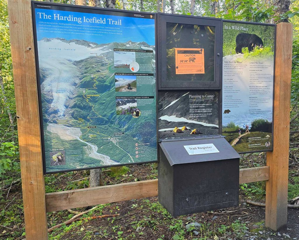 Dzisiaj mamy do pokonania trudny – prawie 9 milowy szlak – Harding Icefield trail, który zaczyna się przy Kenai Fjords National Park Exit Glacier Nature Center.