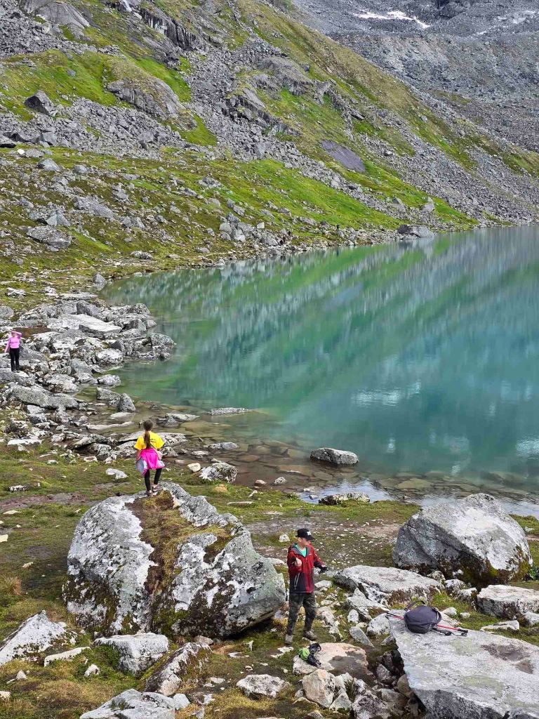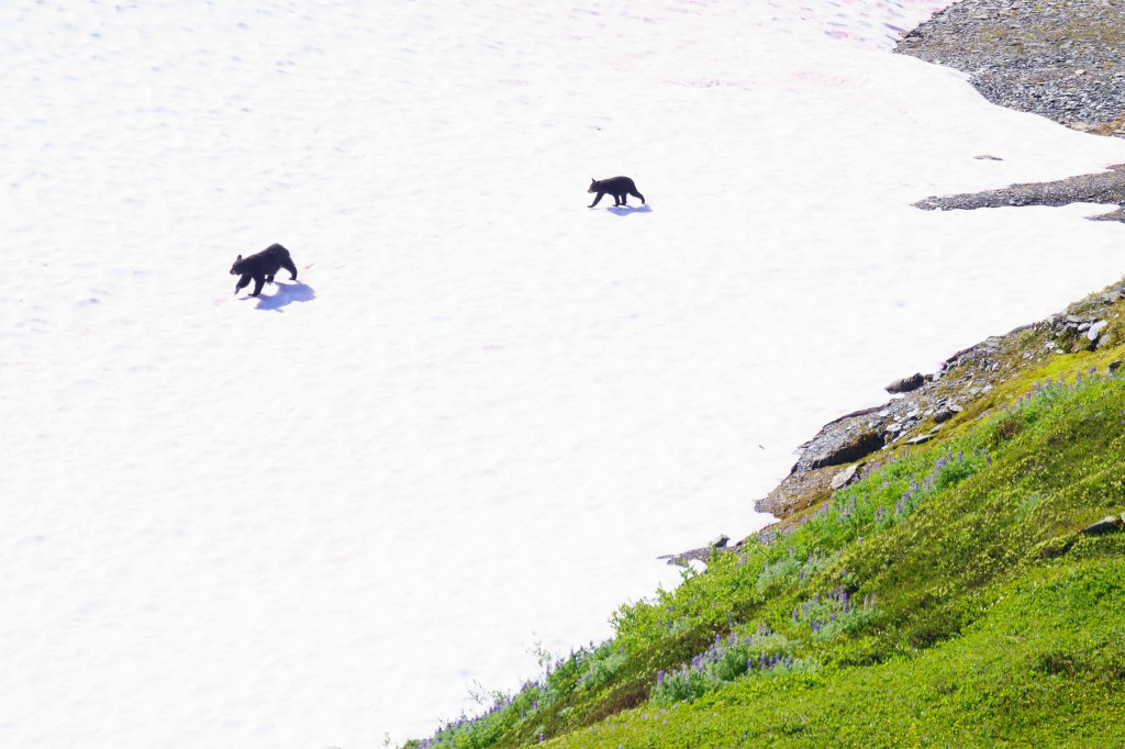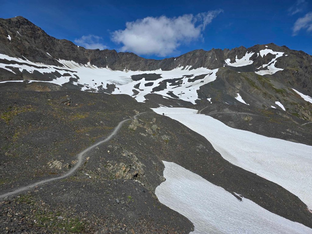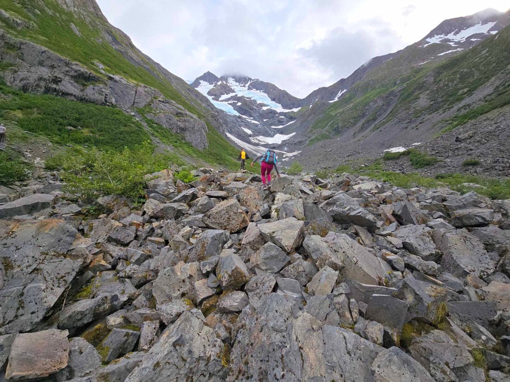 Dopiero, kiedy wychodzimy na Marmot Meadows zaczynają się wyłaniać piękne góry i jęzor lodowca Exit.