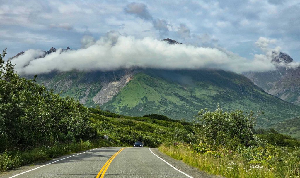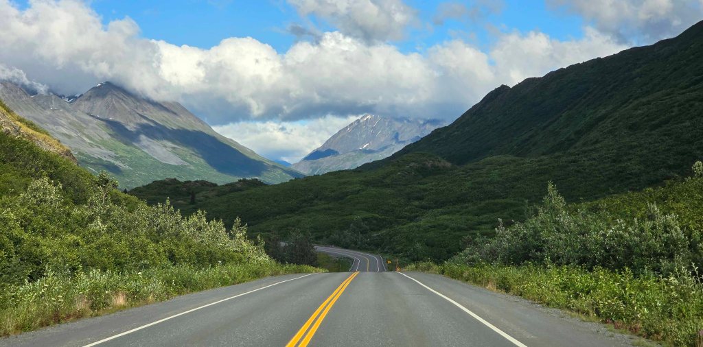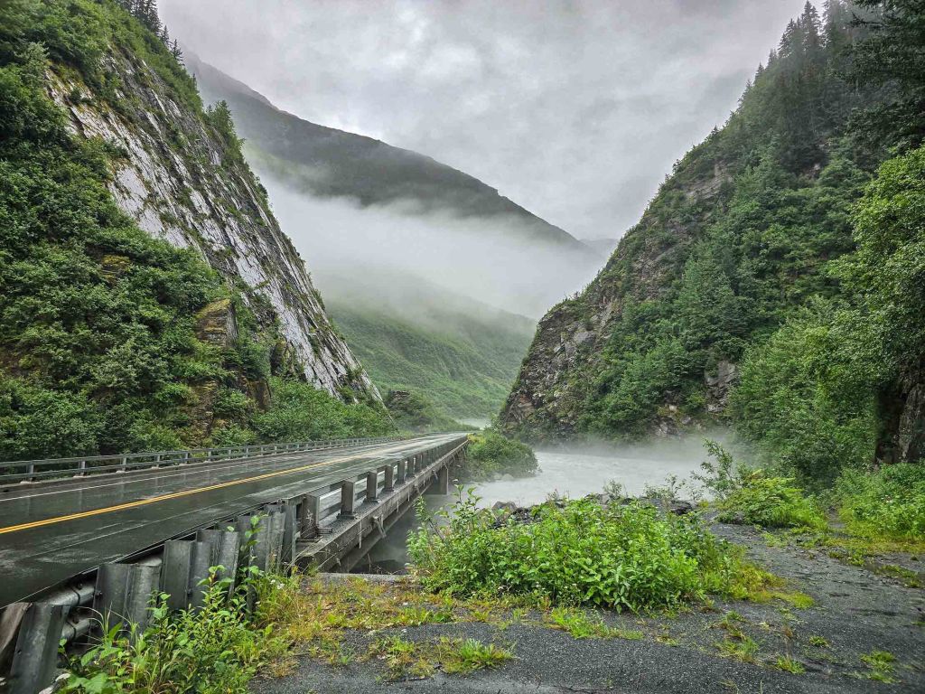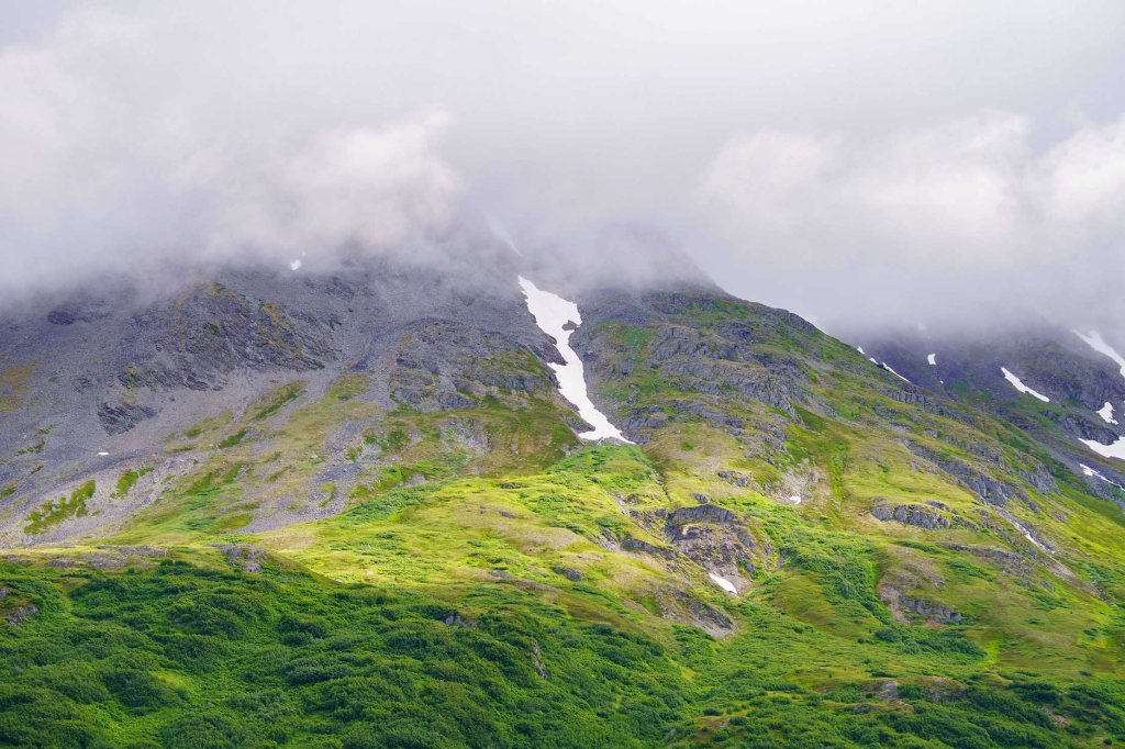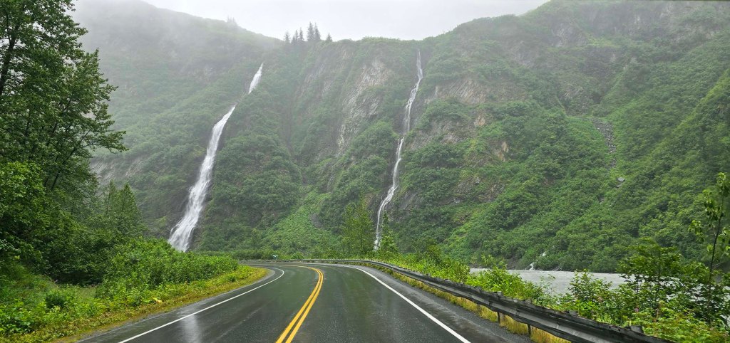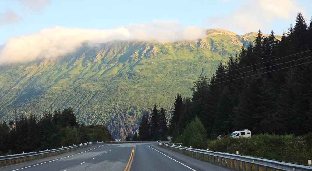 Coraz wspanialsze widoki powoli wyłaniają się zza chmur i pogoda poprawia się z każdą minutą oddalania się od Whittier.