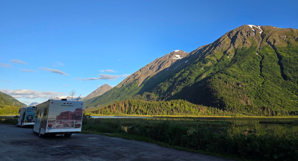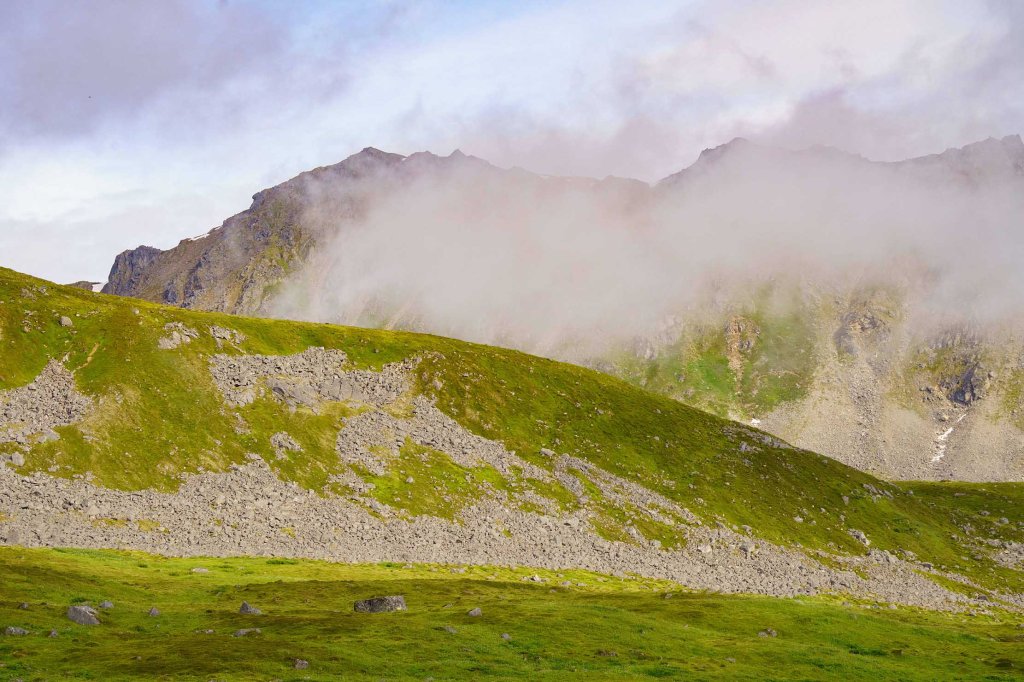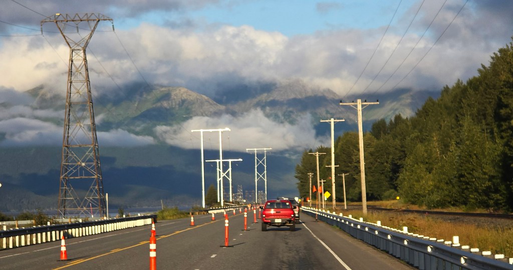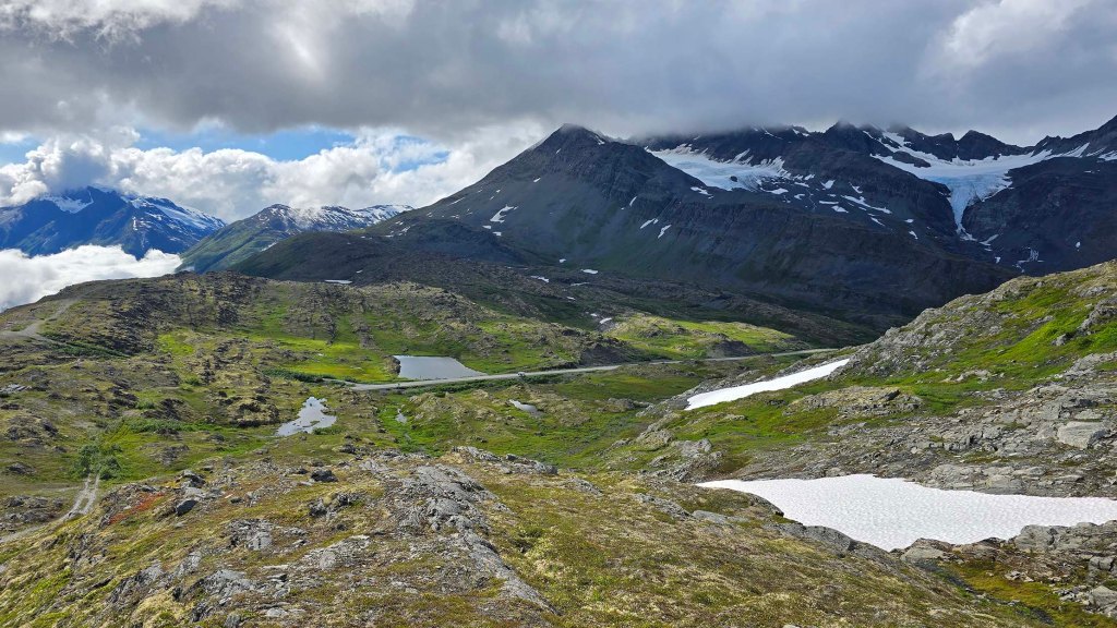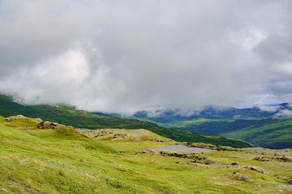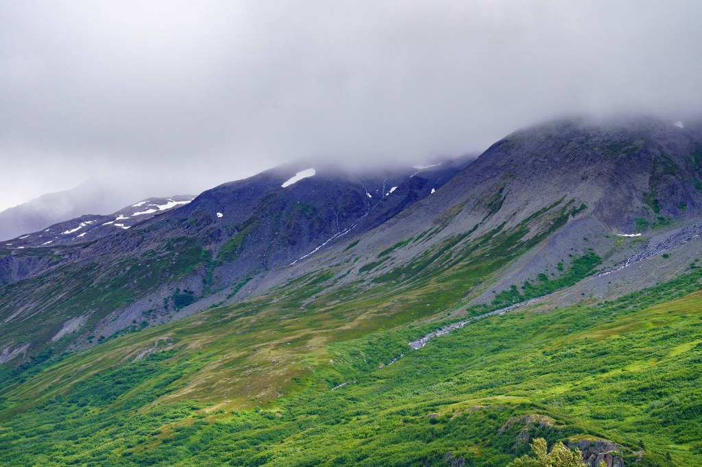 Coraz wspanialsze widoki powoli wyłaniają się zza chmur i pogoda poprawia się z każdą minutą oddalania się od Whittier.