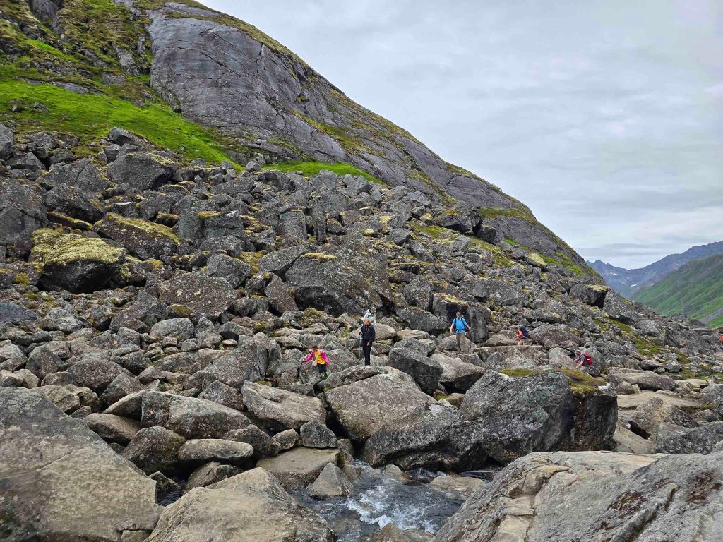 O pełnej godzinie stajemy znowu w linii przed tunelem by „wydostać” się na zewnątrz. Widoczność jest bardzo słaba i jedyne co udaje nam się dostrzec to piękne wodospady spływające z pionowych stoków górskich przy tunelu.