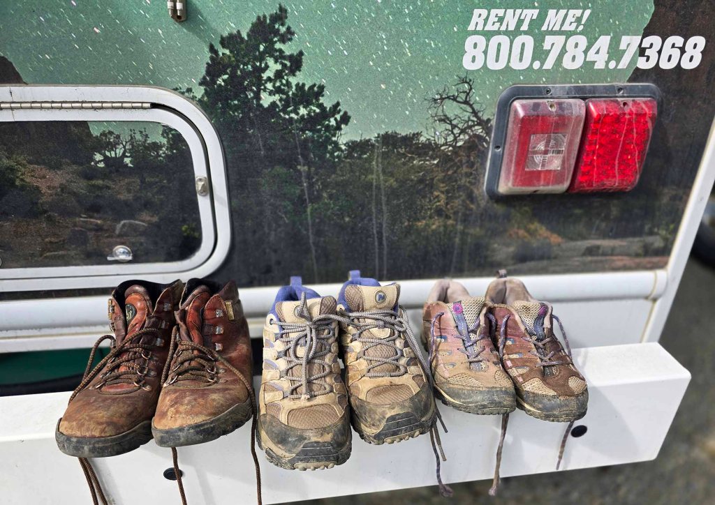 Generator: $3.50/godzinę użytkowania. Pobiera paliwo ze zbiornika, musi być powyżej ¼ zbiornika, żeby generator w ogóle zadziałał. My nie korzystaliśmy, bo nie było takiej potrzeby. Baterie do telefonów i aparatu ładowaliśmy podczas jazdy poprzez wielogniazdkowy „power inverter”, zakupiony wcześniej na Amazon (ALLWEI 300W Car Power Inverter with 65W USB-C and 3.0 USB Port – DC 12V to 110V – $25). A światło, które używaliśmy podczas postojów i wieczorem w kabinie zasilane jest w pełni z drugiego akumulatora (który doładowywuje się podczas jazdy) i nigdy nam się ten akumulator nie wyczerpał.