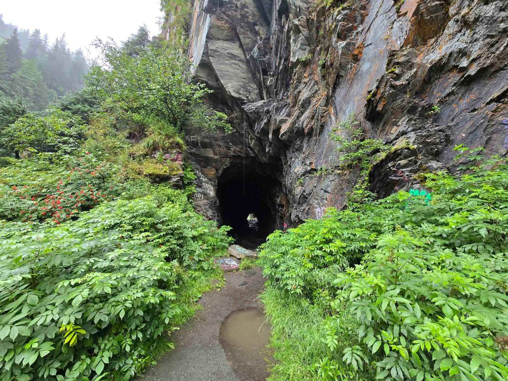 Do jaskini podchodzimy na bezpieczną odległość ze względu na możliwość jej zawalenia….