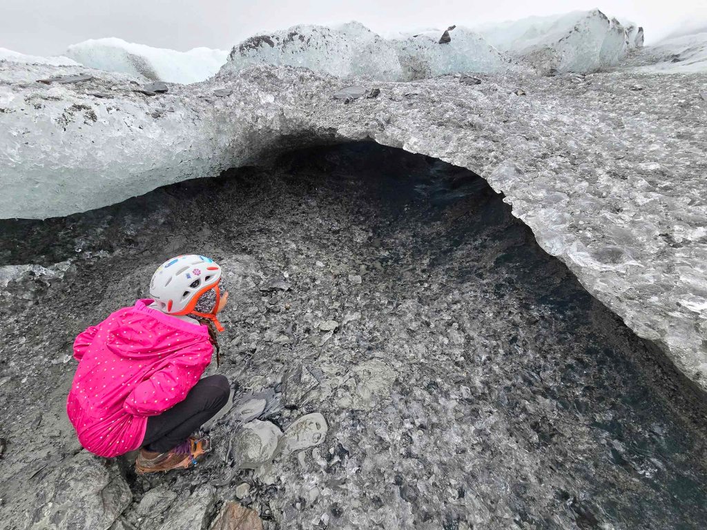 Podejście jest łatwe – idziemy praktycznie płaską ścieżką do utworzonej przez śnieg jaskini lodowej, a następnie trochę się wspinamy po wielkich głazach narzutowych.