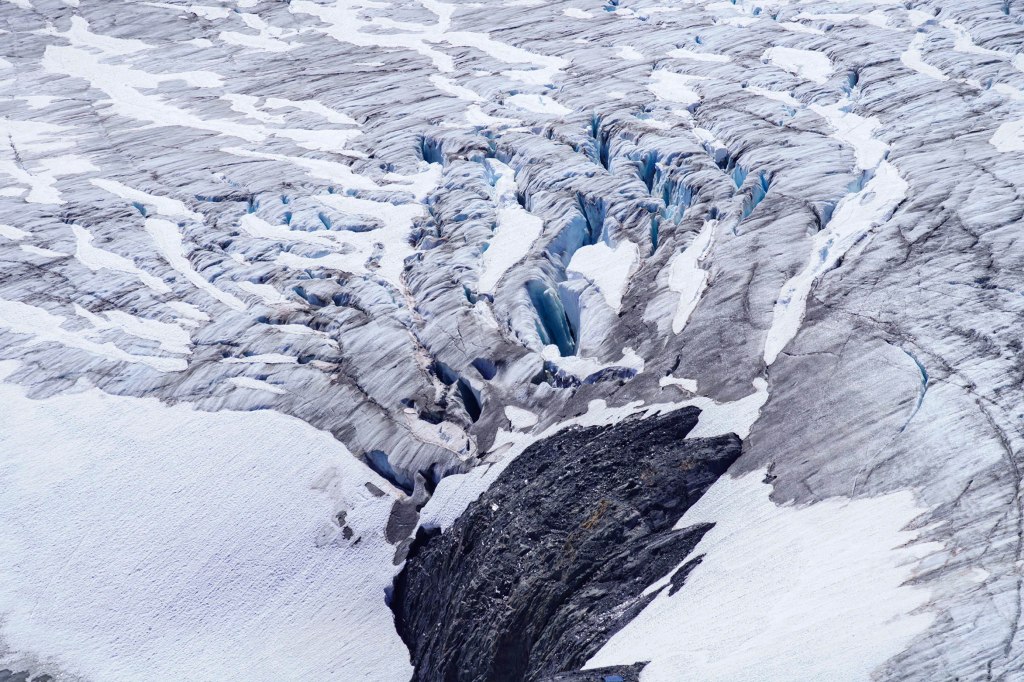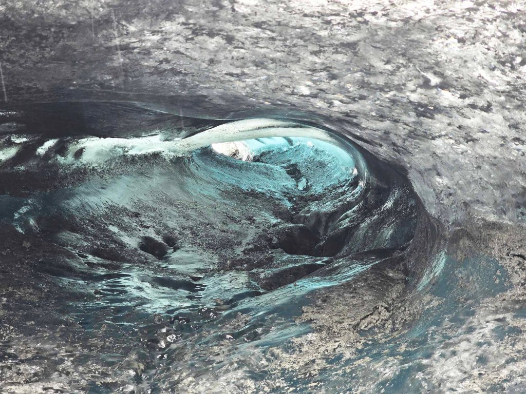 przez teleobiektyw można dopatrzeć się wielu ciekawych szczegółów lodowca.
