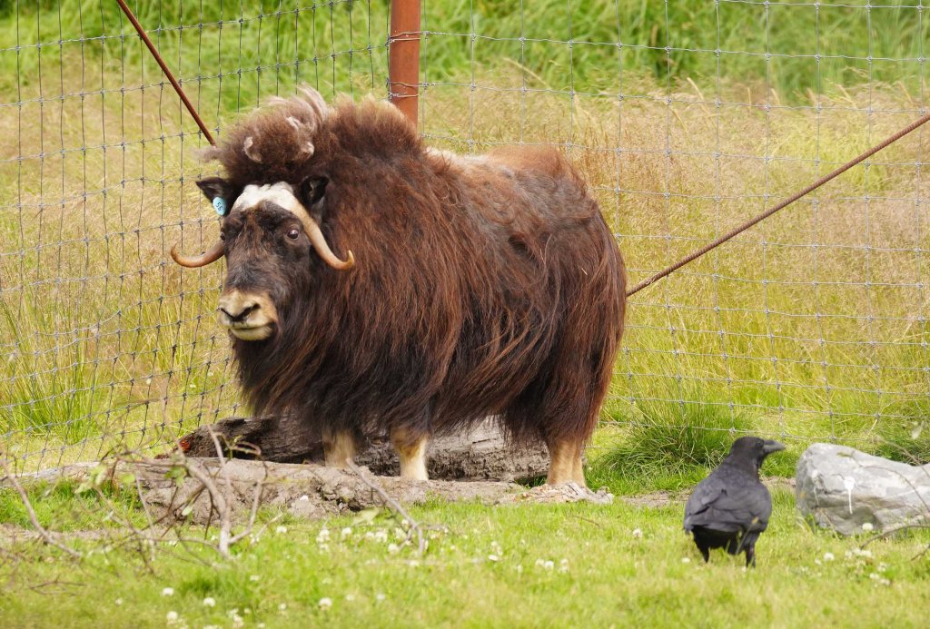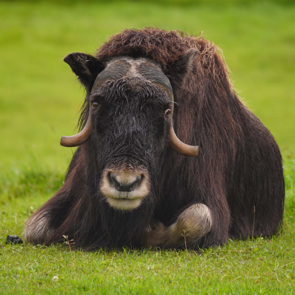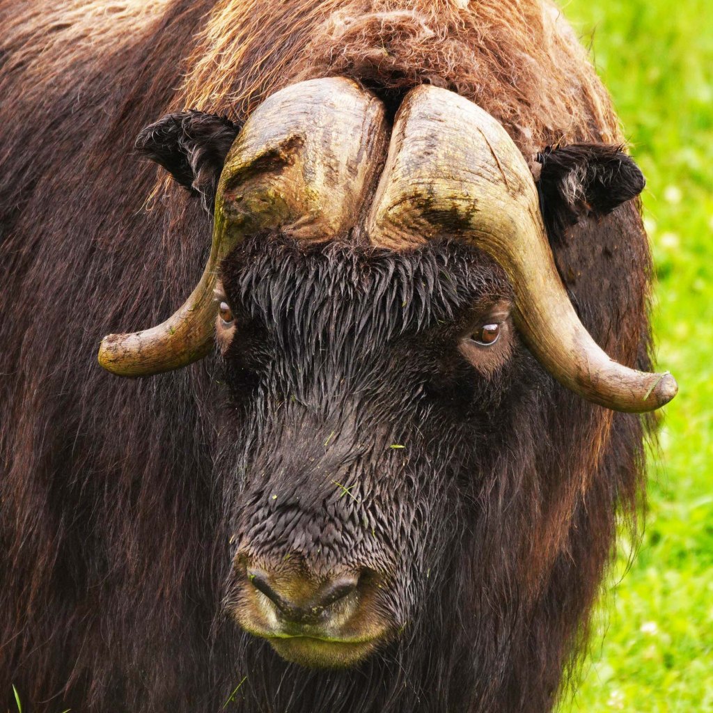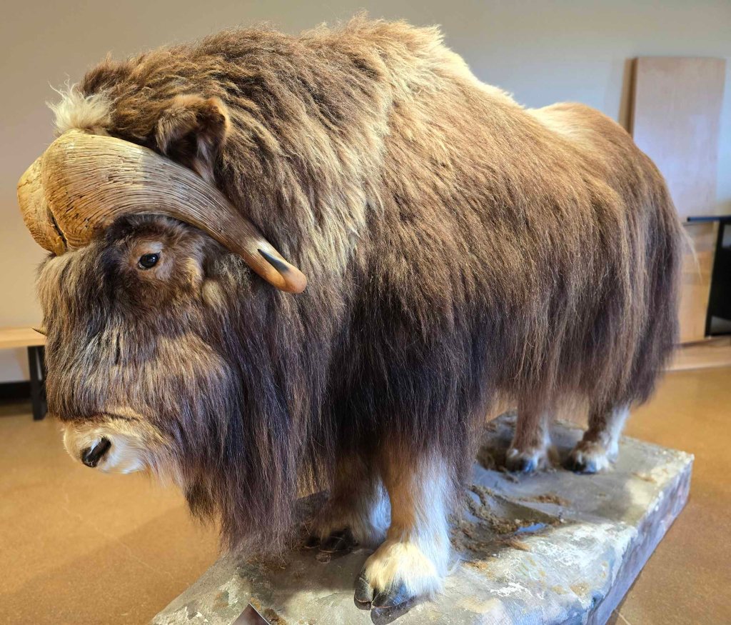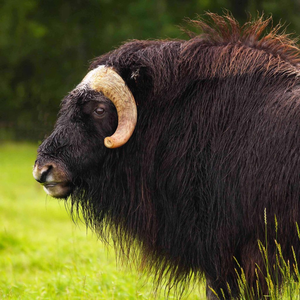 Musk Oxen mają 2 warstwy futra – zewnętrzną warstwę (zwaną „włosami ochronnymi”) i wewnętrzną warstwę krótszych włosów zwaną „qiviut”, która wypada na sezon letni.